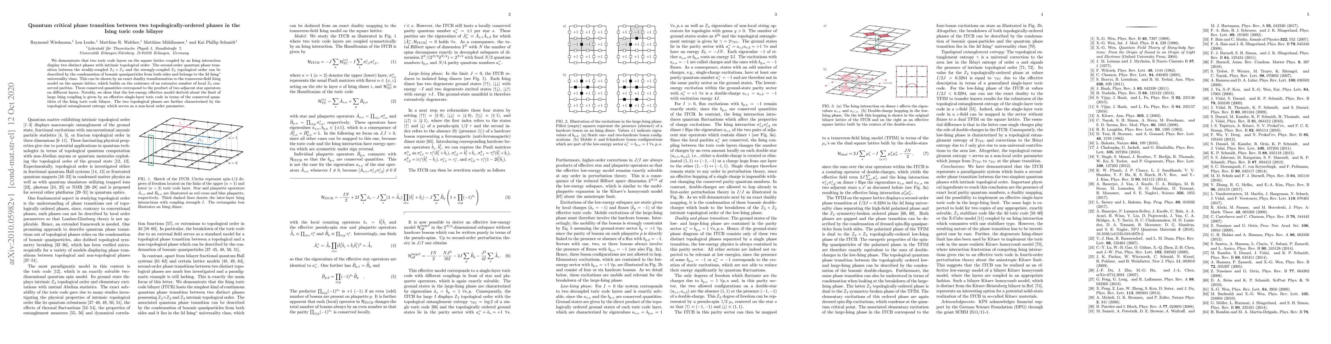 This paper investigates the quantum critical phase transition in an Ising toric code bilayer, revealing two topologically ordered phases and a second-order transition between them, described by the 3d Ising$^*$ universality class. The transition is characterized by the condensation of bosonic quasiparticles and is linked to the transverse-field Ising model via an exact duality transformation.