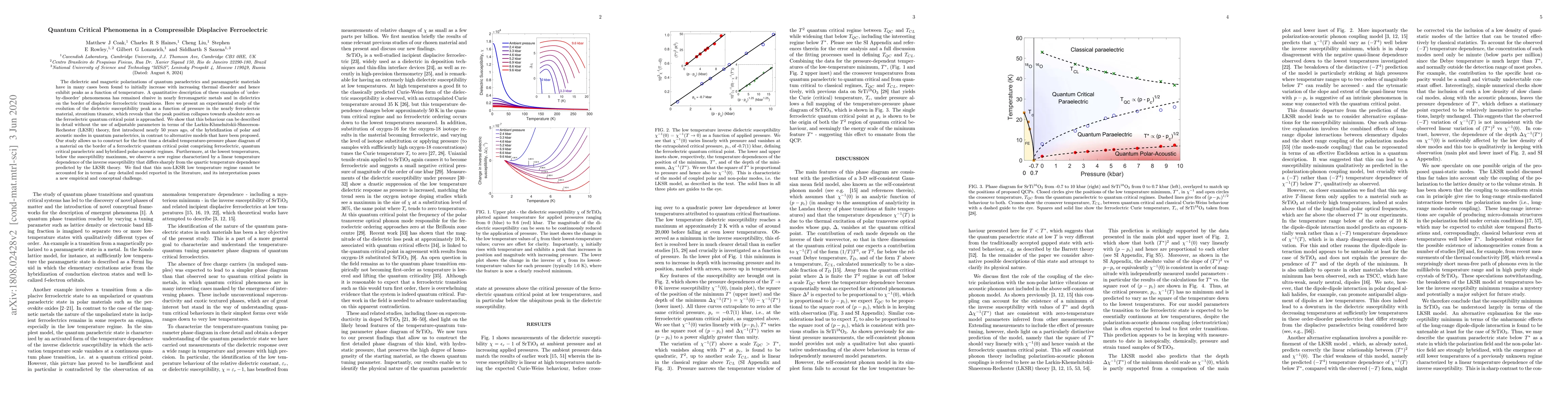 The dielectric and magnetic polarizations of quantum paraelectrics and paramagnetic materials have in many cases been found to initially increase with increasing thermal disorder and hence exhibit peaks as a function of temperature. A quantitative description of these examples of 'order-by-disorder' phenomenona has remained elusive in nearly ferromagnetic metals and in dielectrics on the border of displacive ferroelectric transitions. Here we present an experimental study of the evolution of the dielectric susceptibility peak as a function of pressure in the nearly ferroelectric material, strontium titanate, which reveals that the peak position collapses towards absolute zero as the ferroelectric quantum critical point is approached. We show that this behaviour can be described in detail without the use of adjustable parameters in terms of the Larkin-Khmelnitskii-Shneerson-Rechester (LKSR) theory, first introduced nearly 50 years ago, of the hybridization of polar and acoustic modes in quantum paraelectrics, in contrast to alternative models that have been proposed. Our study allows us to construct for the first time a detailed temperature-pressure phase diagram of a material on the border of a ferroelectric quantum critical point comprising ferroelectric, quantum critical paraelectric and hybridized polar-acoustic regimes. Furthermore, at the lowest temperatures, below the susceptibility maximum, we observe a new regime characterized by a linear temperature dependence of the inverse susceptibility that differs sharply from the quartic temperature dependence predicted by the LKSR theory. We find that this non-LKSR low temperature regime cannot be accounted for in terms of any detailed model reported in the literature, and its interpretation poses a new empirical and conceptual challenge.