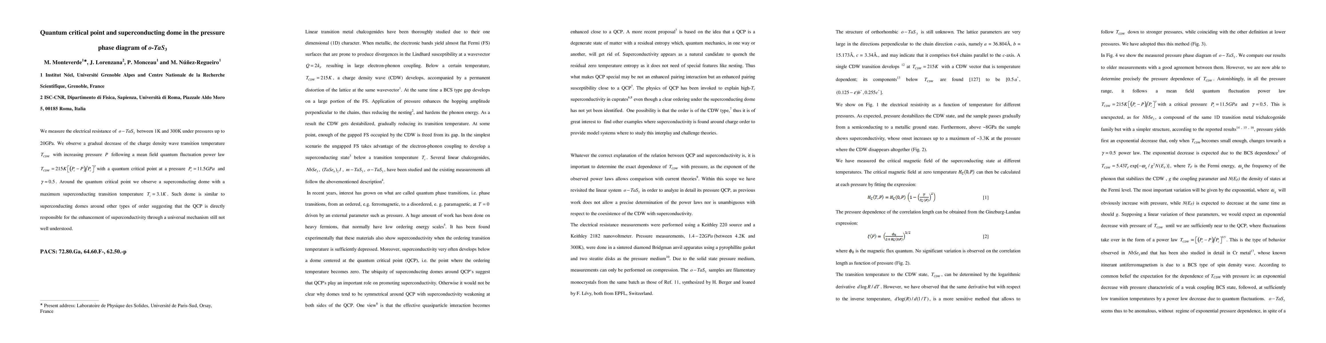 This paper investigates the electrical resistance of o-TaS3 under pressure, revealing a quantum critical point at 11.5GPa where the charge density wave transition diminishes. Near this point, a superconducting dome emerges with a peak transition temperature of 3.1K, suggesting a universal mechanism for superconductivity enhancement linked to the quantum critical point.