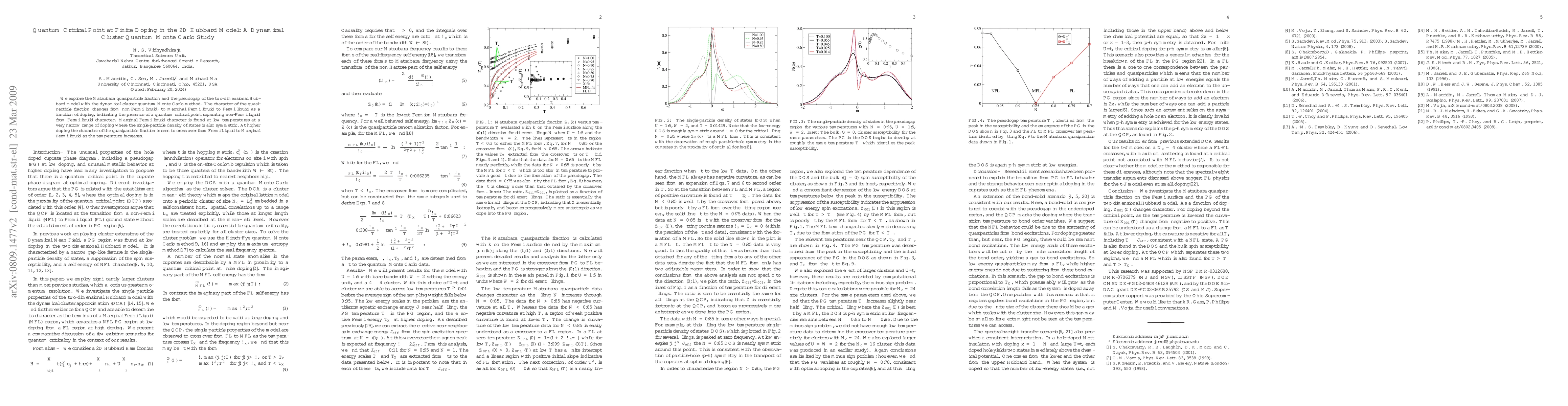 We explore the Matsubara quasiparticle fraction and the pseudogap of the two-dimensional Hubbard model with the dynamical cluster quantum Monte Carlo method. The character of the quasiparticle fraction changes from non-Fermi liquid, to marginal Fermi liquid to Fermi liquid as a function of doping, indicating the presence of a quantum critical point separating non-Fermi liquid from Fermi liquid character. Marginal Fermi liquid character is found at low temperatures at a very narrow range of doping where the single-particle density of states is also symmetric. At higher doping the character of the quasiparticle fraction is seen to cross over from Fermi Liquid to Marginal Fermi liquid as the temperature increases.
