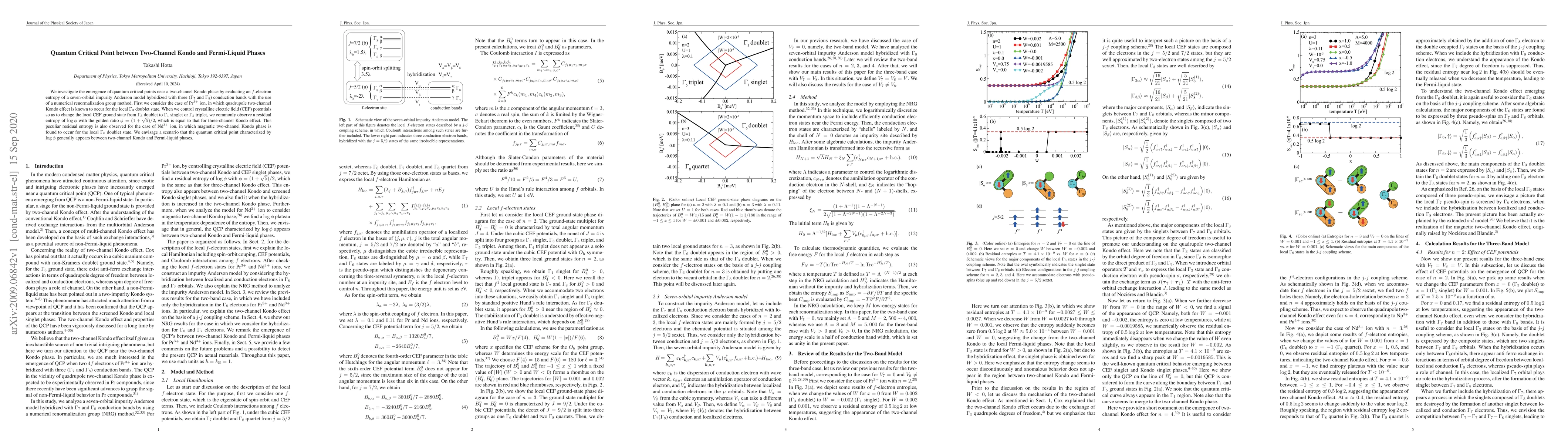 This paper explores quantum critical points near a two-channel Kondo phase using a seven-orbital impurity Anderson model and numerical renormalization group methods. It finds that controlling crystalline electric field potentials leads to a residual entropy of $\log \phi$ between two-channel Kondo and Fermi-liquid phases, suggesting a universal quantum critical behavior.