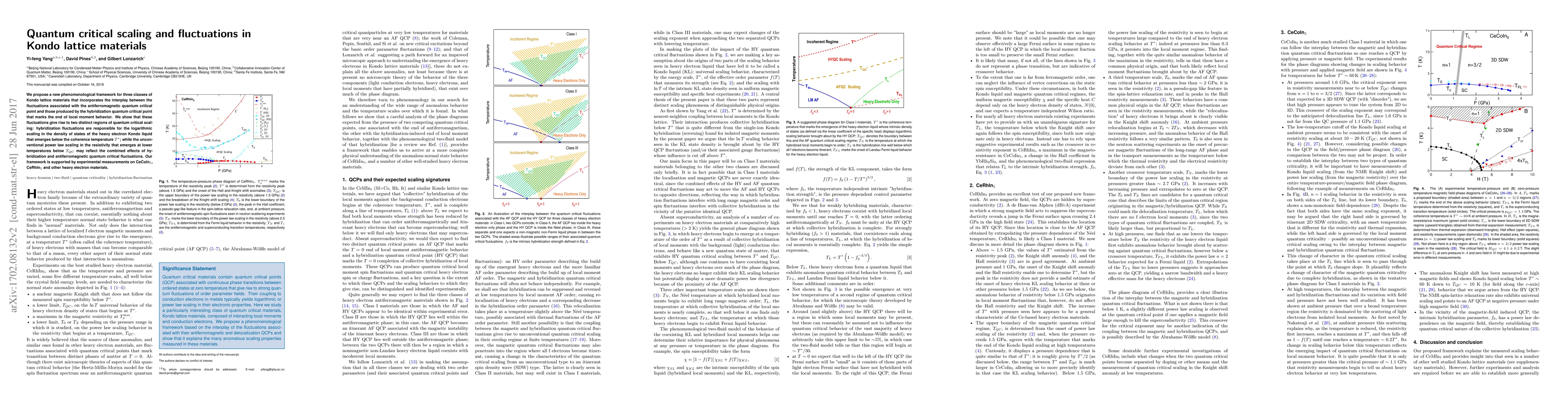 This paper introduces a new framework to describe Kondo lattice materials, highlighting the interplay between quantum critical fluctuations at antiferromagnetic and hybridization points. It identifies two distinct scaling regions: logarithmic scaling in density of states due to hybridization fluctuations, and unconventional power law resistivity scaling influenced by both types of fluctuations, supported by experimental data from CeCoIn5, CeRhIn5, and other materials.