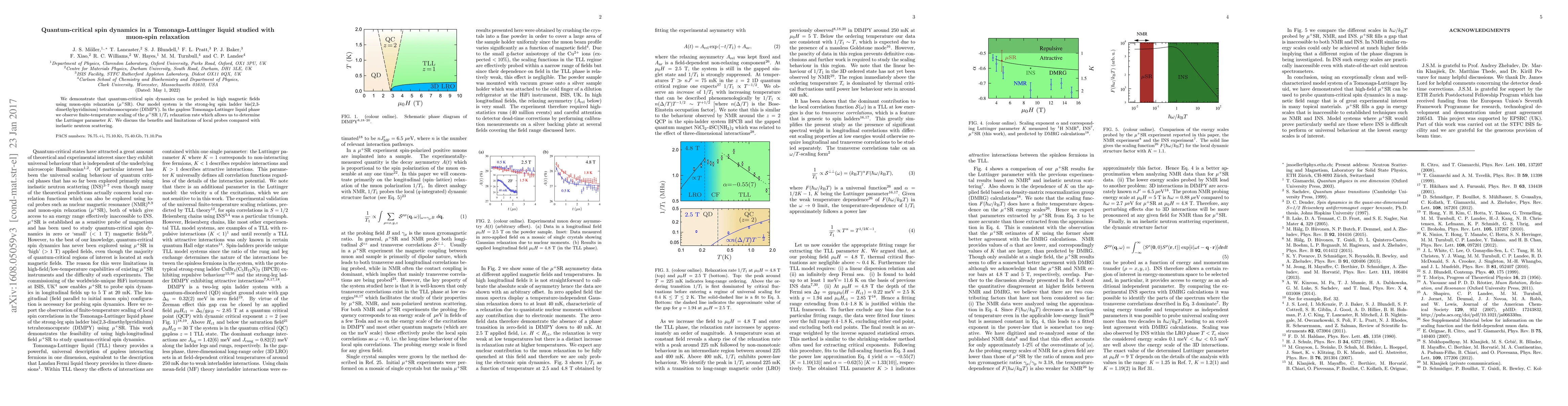 We demonstrate that quantum-critical spin dynamics can be probed in high magnetic fields using muon-spin relaxation ($\mu^{+}$SR). Our model system is the strong-leg spin ladder bis(2,3-dimethylpyridinium) tetrabromocuprate (DIMPY). In the gapless Tomonaga-Luttinger liquid phase we observe finite-temperature scaling of the $\mu^{+}$SR $1/T_1$ relaxation rate which allows us to determine the Luttinger parameter $K$. We discuss the benefits and limitations of local probes compared with inelastic neutron scattering.