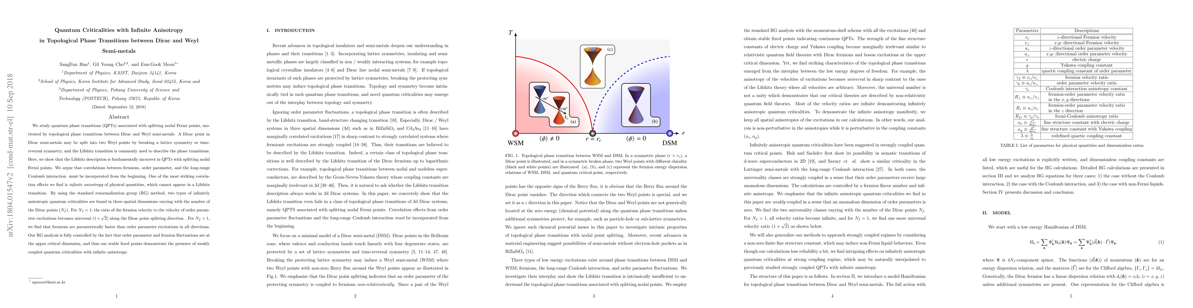 We study quantum phase transitions (QPTs) associated with splitting nodal Fermi points, motivated by topological phase transitions between Dirac and Weyl semi-metals. A Dirac point in Dirac semi-metals may be split into two Weyl points by breaking a lattice symmetry or time reversal symmetry, and the Lifshitz transition is commonly used to describe the phase transitions. Here, we show that the Lifshitz description is fundamentally incorrect in QPTs with splitting nodal Fermi points. We argue that correlations between fermions, order parameter, and the long range Coulomb interaction { must} be incorporated from the beginning. One of the most striking correlation effects we find is {\it infinite anisotropy} of physical quantities, which cannot appear in a Lifshitz transition. By using the standard renormalization group (RG) method, two types of infinitely anisotropic quantum criticalities are found in three spatial dimensions varying with the number of the Dirac points ($N_f$). For $N_f = 1$, the ratio of the fermion velocity to the velocity of order parameter excitations becomes universal ($\sqrt{2}-1$) along the Dirac point splitting direction . For $N_f >1$, we find that fermions are parametrically faster than order parameter excitations in all directions. Our RG analysis is fully controlled by the fact that order parameter and fermion fluctuations are at the upper critical dimension, and thus our stable fixed points demonstrate the presence of weakly coupled quantum criticalities with infinite anisotropy.