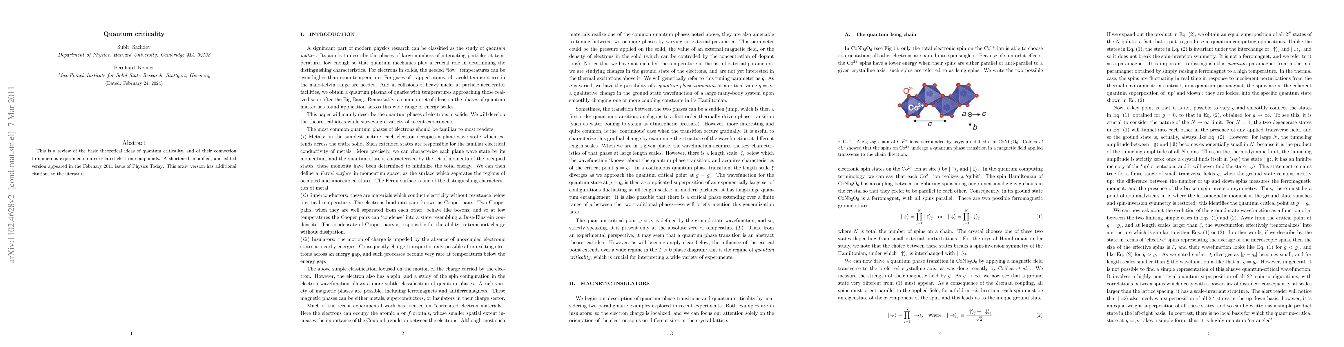 This is a review of the basic theoretical ideas of quantum criticality, and of their connection to numerous experiments on correlated electron compounds. A shortened, modified, and edited version appeared in Physics Today. This arxiv version has additional citations to the literature.