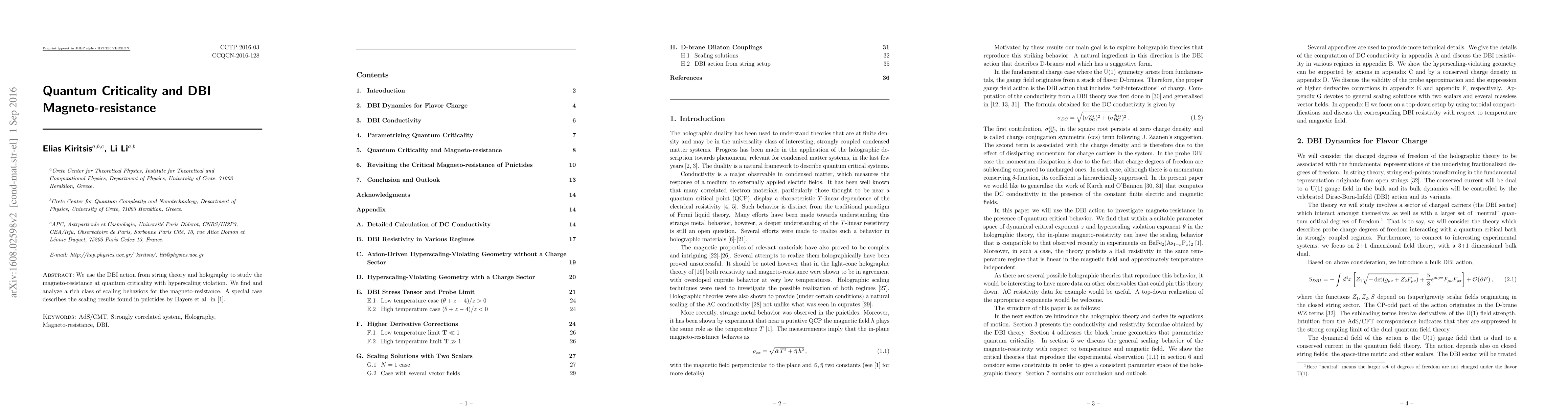 This paper employs the DBI action from string theory to investigate magneto-resistance at quantum criticality, revealing diverse scaling behaviors, particularly highlighting the scaling observed in pnictides as reported by Hayers et al. The study focuses on systems with hyperscaling violation.