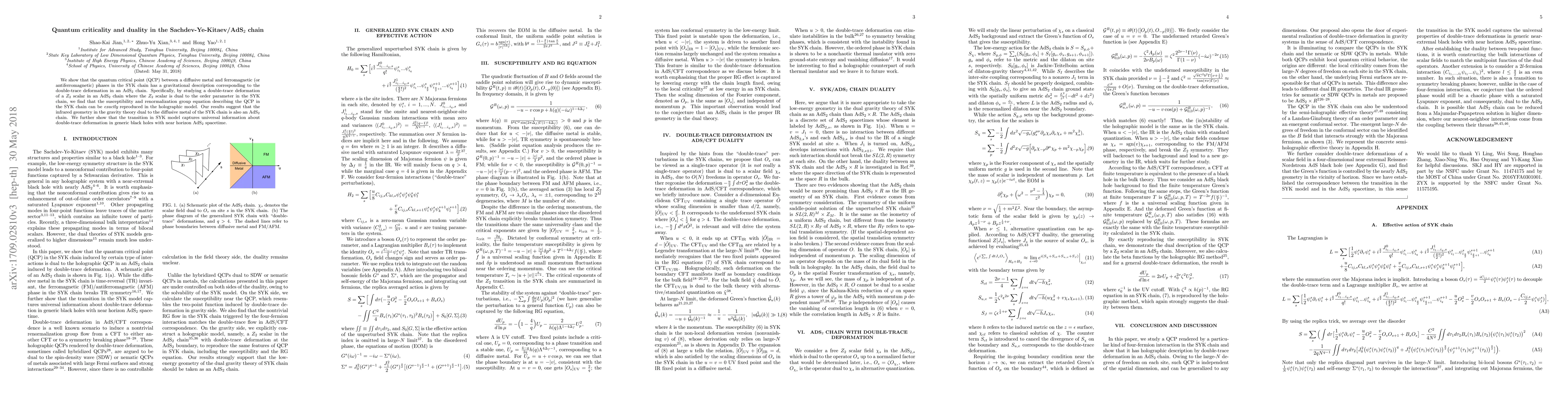 This paper demonstrates that the quantum critical point in the SYK chain, transitioning between metallic and magnetic phases, has a gravitational dual in an AdS$_2$ chain. The study finds that the SYK model's critical behavior can be exactly reproduced in the holographic model, revealing universal insights into double-trace deformations in black holes with AdS$_2$ near-horizon geometries.
