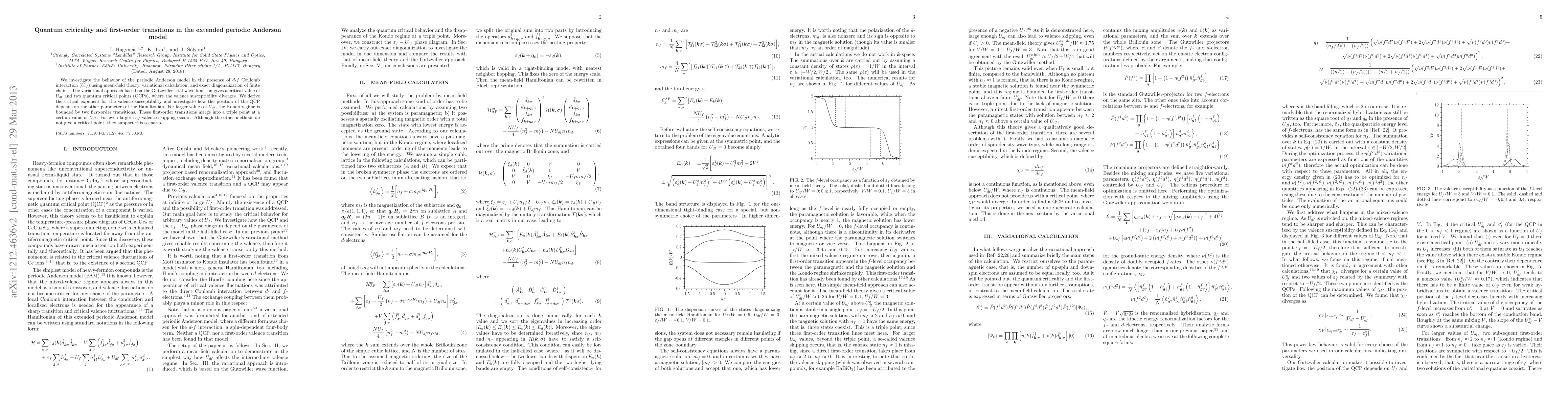 This paper explores the periodic Anderson model's behavior under $d$-$f$ Coulomb interaction, identifying quantum critical points and first-order transitions using mean-field theory, variational calculations, and exact diagonalization. The variational method reveals critical interaction values and a triple point where first-order transitions merge.