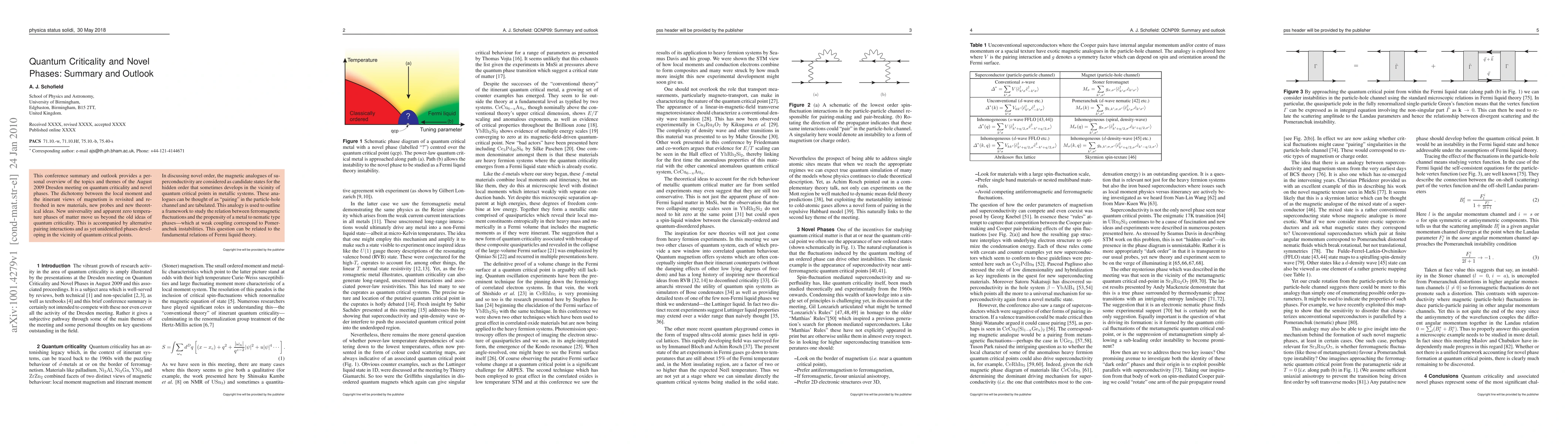 This conference summary and outlook provides a personal overview of the topics and themes of the August 2009 Dresden meeting on quantum criticality and novel phases. The dichotomy between the local moment and the itinerant views of magnetism is revisited and refreshed in new materials, new probes and new theoretical ideas. New universality and apparent zero temperature phases of matter move us beyond the old ideas of quantum criticality. This is accompanied by alternative pairing interactions and as yet unidentified phases developing in the vicinity of quantum critical points. In discussing novel order, the magnetic analogues of superconductivity are considered as candidate states for the hidden order that sometimes develops in the vicinity of quantum critical points in metallic systems. These analogues can be thought of as "pairing" in the particle-hole channel and are tabulated. This analogy is used to outline a framework to study the relation between ferromagnetic fluctuations and the propensity of a metal to nematic type phases which at weak coupling correspond to Pomeranchuk instabilities. This question can be related to the fundamental relations of Fermi liquid theory.
