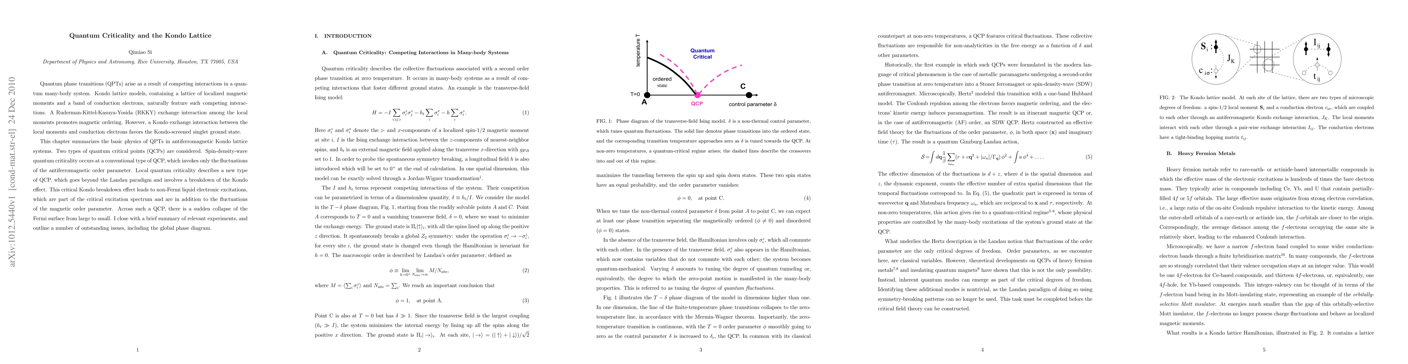 Quantum phase transitions (QPTs) arise as a result of competing interactions in a quantum many-body system. Kondo lattice models, containing a lattice of localized magnetic moments and a band of conduction electrons, naturally feature such competing interactions. A Ruderman-Kittel-Kasuya-Yosida (RKKY) exchange interaction among the local moments promotes magnetic ordering. However, a Kondo exchange interaction between the local moments and conduction electrons favors the Kondo-screened singlet ground state. This chapter summarizes the basic physics of QPTs in antiferromagnetic Kondo lattice systems. Two types of quantum critical points (QCPs) are considered. Spin-density-wave quantum criticality occurs at a conventional type of QCP, which invokes only the fluctuations of the antiferromagnetic order parameter. Local quantum criticality describes a new type of QCP, which goes beyond the Landau paradigm and involves a breakdown of the Kondo effect. This critical Kondo breakdown effect leads to non-Fermi liquid electronic excitations, which are part of the critical excitation spectrum and are in addition to the fluctuations of the magnetic order parameter. Across such a QCP, there is a sudden collapse of the Fermi surface from large to small. I close with a brief summary of relevant experiments, and outline a number of outstanding issues, including the global phase diagram.