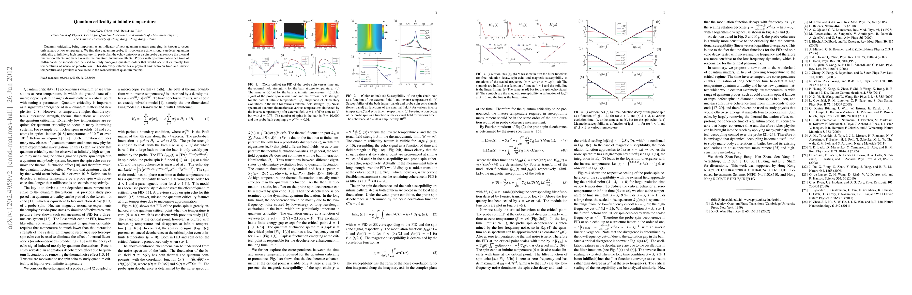 This paper reveals that quantum criticality can be detected at infinitely high temperatures using quantum probes with long coherence times, facilitated by echo control over spin probes. This method uncovers quantum fluctuation effects, enabling the study of quantum orders typically observed at ultra-low temperatures, thus linking time and inverse temperature in quantum physics.