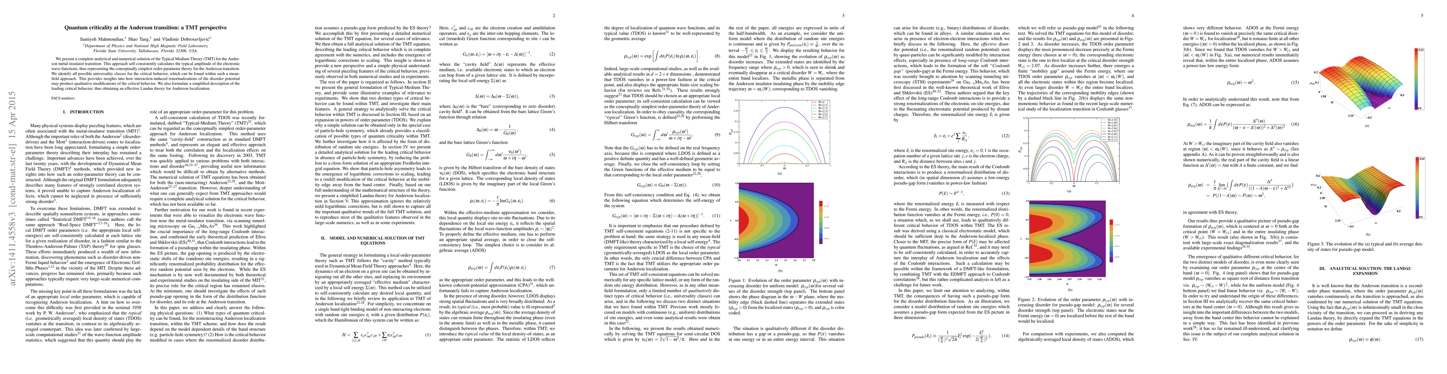 This paper presents a comprehensive analytical and numerical solution of the Typical Medium Theory (TMT) for the Anderson metal-insulator transition, identifying all possible universality classes and providing insights into interaction-induced renormalization effects. It formulates an effective Landau theory for the critical behavior of Anderson localization.