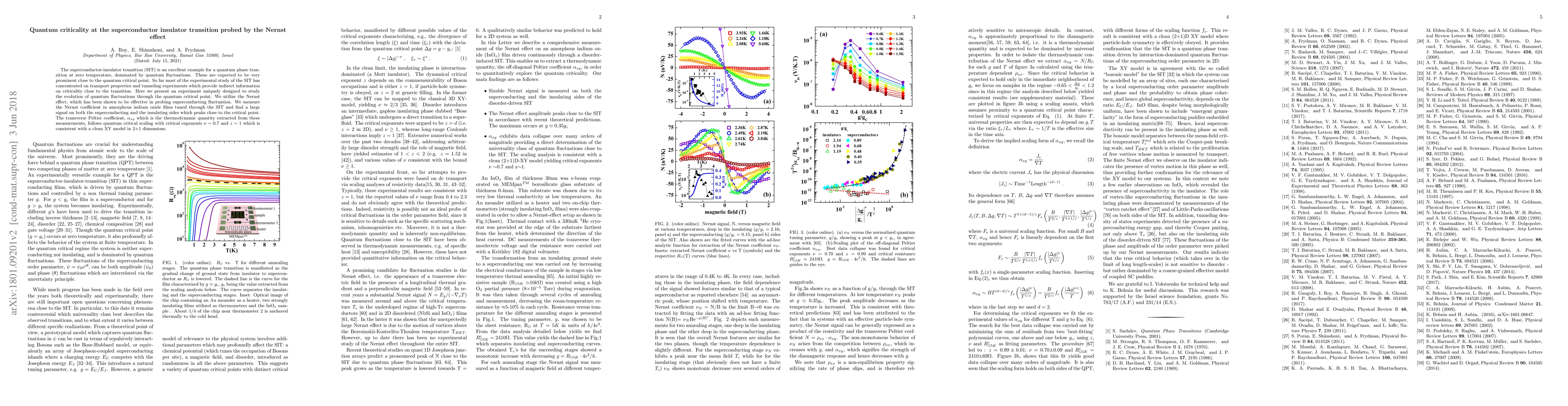 This paper investigates the superconductor-insulator transition using the Nernst effect to probe quantum criticality, revealing a large Nernst coefficient signal peaking near the critical point and supporting quantum critical scaling consistent with a clean XY model in 2+1 dimensions.