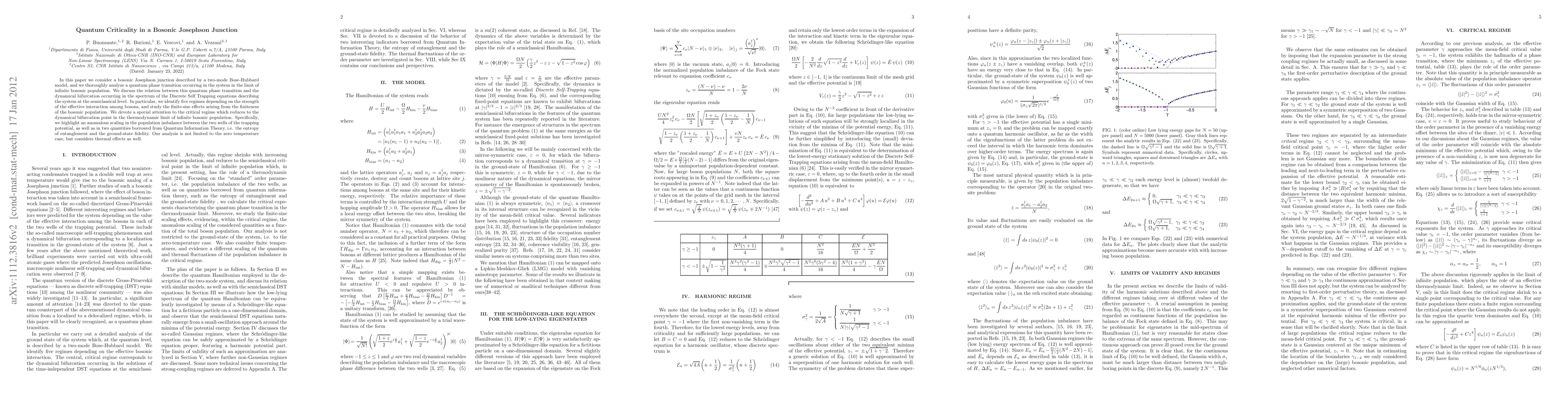 The paper presents a detailed analysis of quantum criticality in a bosonic Josephson junction, linking it to semiclassical dynamics and identifying distinct regimes based on interaction strength.