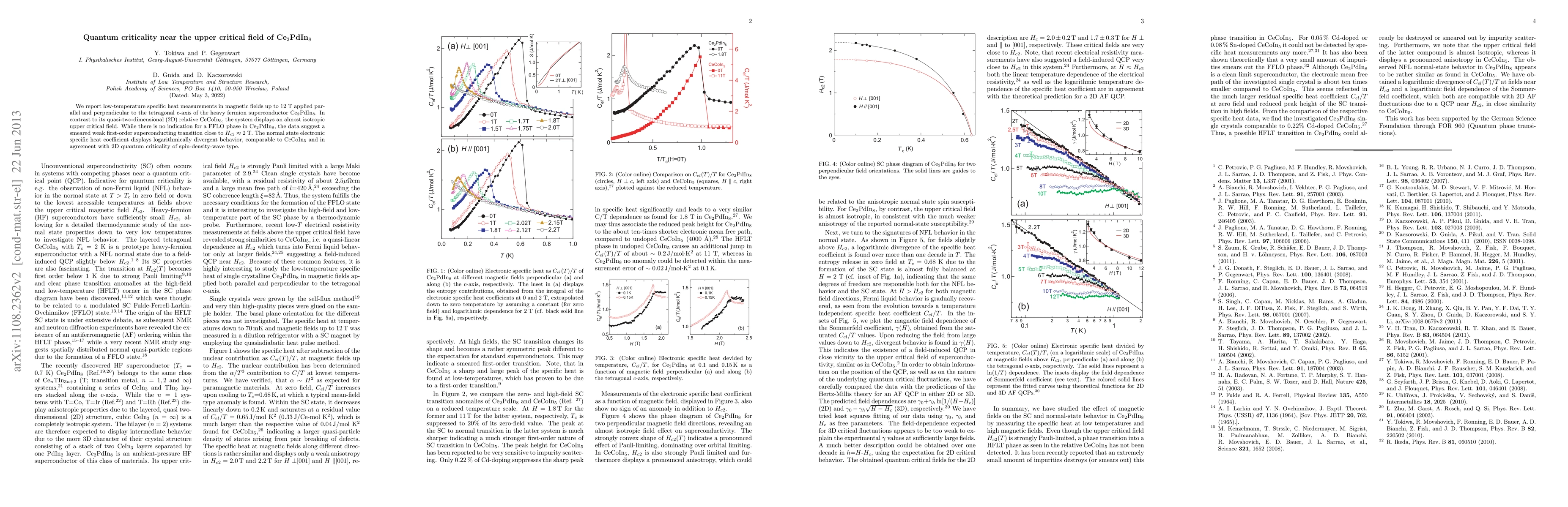 This study investigates the low-temperature specific heat of Ce$_2$PdIn$_8$ under magnetic fields, revealing an almost isotropic upper critical field and a smeared weak first-order superconducting transition near $H_{c2}\approx 2$ T, without evidence of a FFLO phase. The normal state electronic specific heat coefficient shows logarithmic divergence, indicating 2D quantum criticality akin to CeCoIn$_5$.