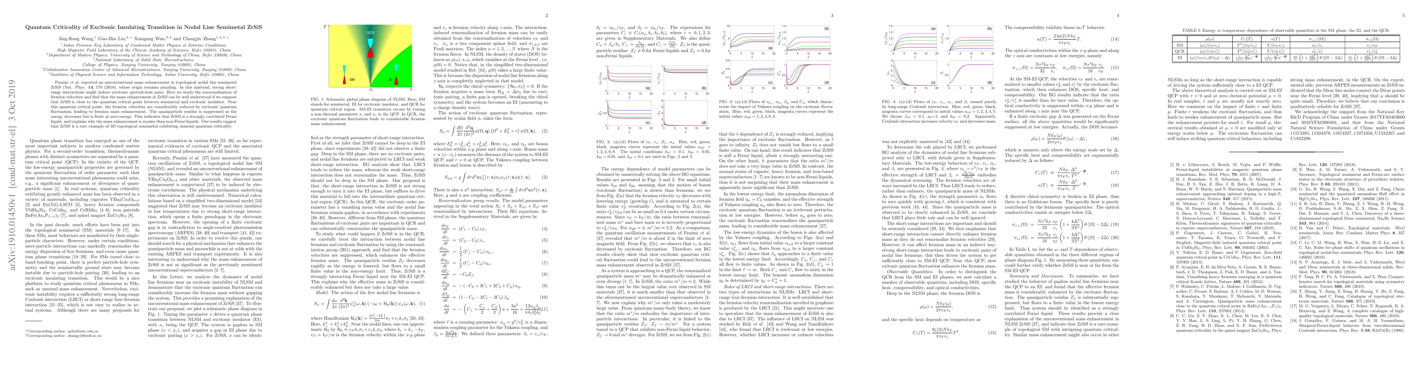 Pezzini et al. investigate the quantum criticality of ZrSiS, a topological nodal line semimetal, revealing strong mass enhancement due to excitonic interactions near a quantum critical point between semimetal and excitonic insulator, indicating it as a strongly correlated Fermi liquid.