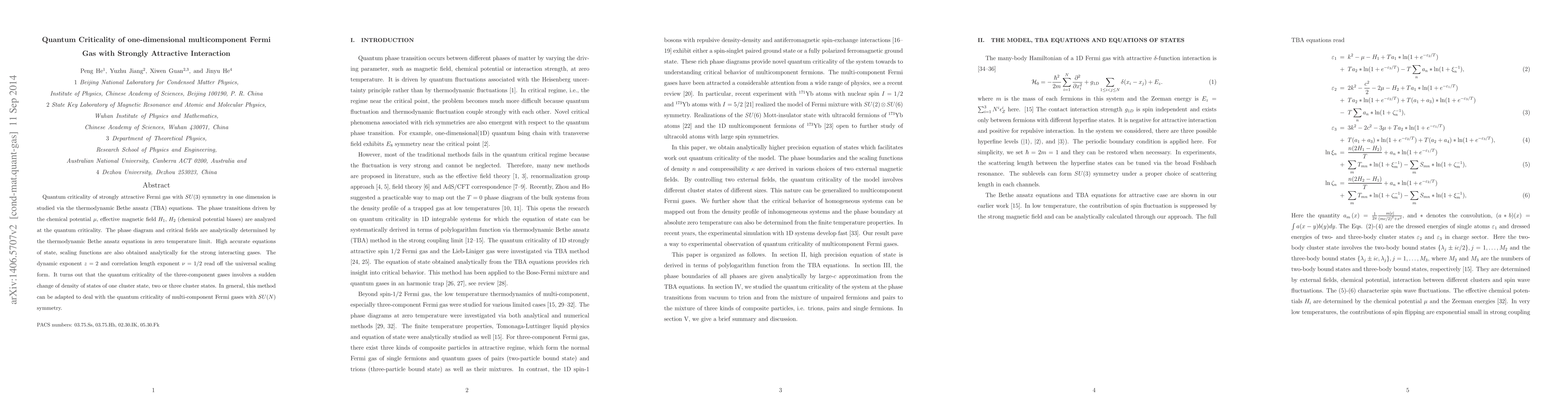 This paper investigates the quantum criticality of a one-dimensional multicomponent Fermi gas with strong attractive interactions, employing the thermodynamic Bethe ansatz to analyze phase transitions driven by chemical potential and magnetic field biases. The study reveals universal scaling behavior with a dynamic exponent $z=2$ and correlation length exponent $\nu=1/2$, and identifies distinct density of states changes at criticality for different cluster states.