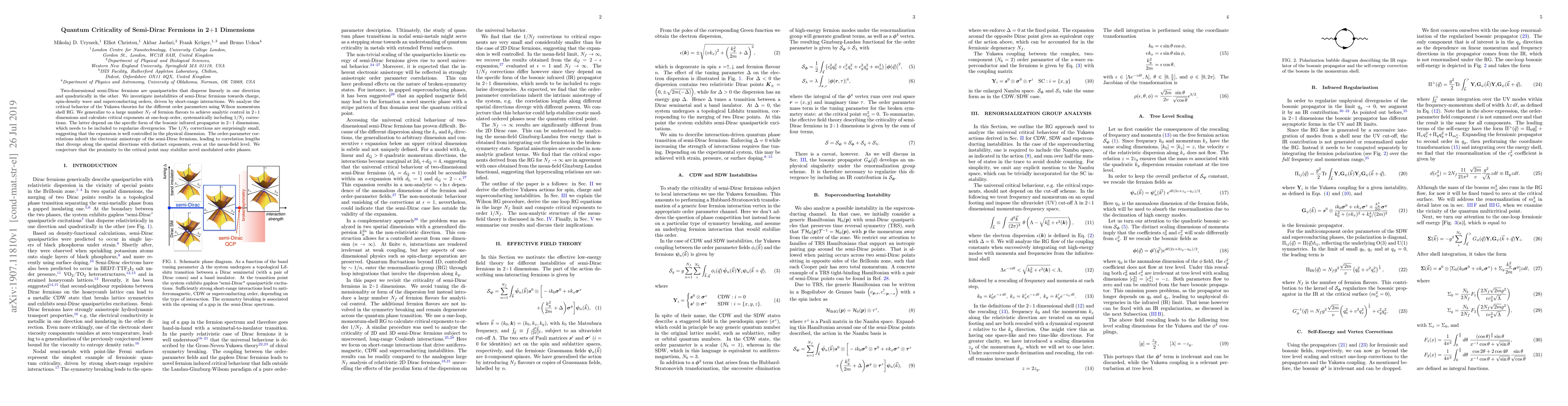 Two-dimensional semi-Dirac fermions are quasiparticles that disperse linearly in one direction and quadratically in the other. We investigate instabilities of semi-Dirac fermions towards charge, spin-density wave and superconducting orders, driven by short-range interactions. We analyze the critical behavior of the Yukawa theories for the different order parameters using Wilson momentum shell RG. We generalize to a large number $N_f$ of fermion flavors to achieve analytic control in 2+1 dimensions and calculate critical exponents at one-loop order, systematically including $1/N_f$ corrections. The latter depend on the specific form of the bosonic infrared propagator in 2+1 dimensions, which needs to be included to regularize divergencies. The $1/N_f$ corrections are surprisingly small, suggesting that the expansion is well controlled in the physical dimension. The order-parameter correlations inherit the electronic anisotropy of the semi-Dirac fermions, leading to correlation lengths that diverge along the spatial directions with distinct exponents, even at the mean-field level. We conjecture that the proximity to the critical point may stabilize novel modulated order phases.