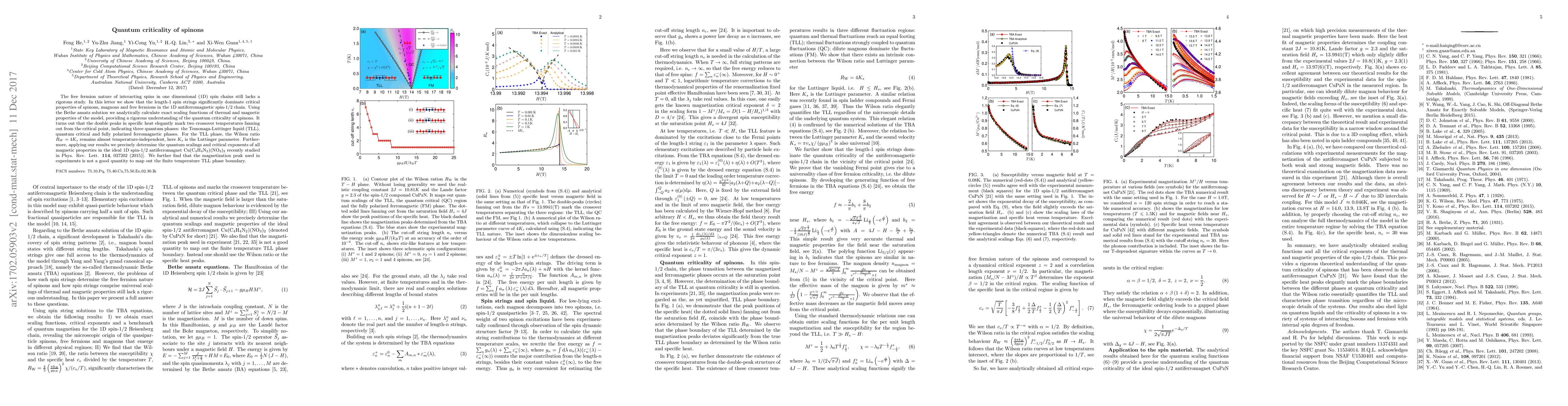 The free fermion nature of interacting spins in one dimensional (1D) spin chains still lacks a rigorous study. In this letter we show that the length-$1$ spin strings significantly dominate critical properties of spinons, magnons and free fermions in the 1D antiferromagnetic spin-1/2 chain. Using the Bethe ansatz solution we analytically calculate exact scaling functions of thermal and magnetic properties of the model, providing a rigorous understanding of the quantum criticality of spinons. It turns out that the double peaks in specific heat elegantly mark two crossover temperatures fanning out from the critical point, indicating three quantum phases: the Tomonaga-Luttinger liquid (TLL), quantum critical and fully polarized ferromagnetic phases. For the TLL phase, the Wilson ratio $R_W=4K_s$ remains almost temperature-independent, here $K_s$ is the Luttinger parameter. Furthermore, applying our results we precisely determine the quantum scalings and critical exponents of all magnetic properties in the ideal 1D spin-1/2 antiferromagnet Cu(C${}_4$H${}_4$N${}_2$)(NO${}_3$)${}_2$ recently studied in Phys. Rev. Lett. {\bf 114}, 037202 (2015)]. We further find that the magnetization peak used in experiments is not a good quantity to map out the finite temperature TLL phase boundary.