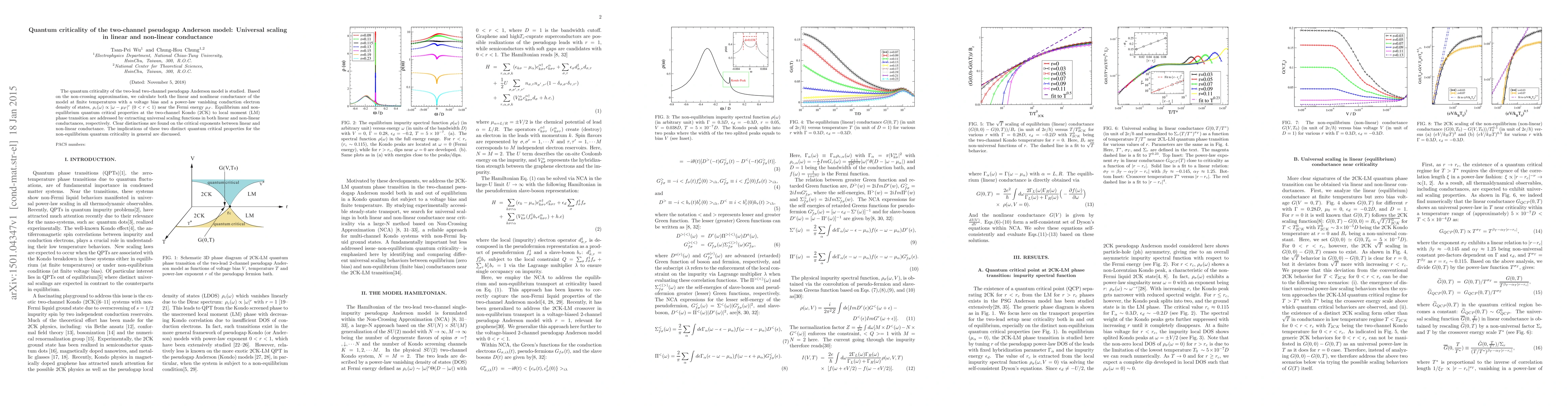 This research investigates the quantum critical behavior of a two-channel pseudogap Anderson model, finding distinct critical exponents in linear and non-linear conductance. It uses the non-crossing approximation to analyze conductance at finite temperatures, revealing universal scaling functions that highlight the differences in equilibrium and non-equilibrium quantum critical properties.