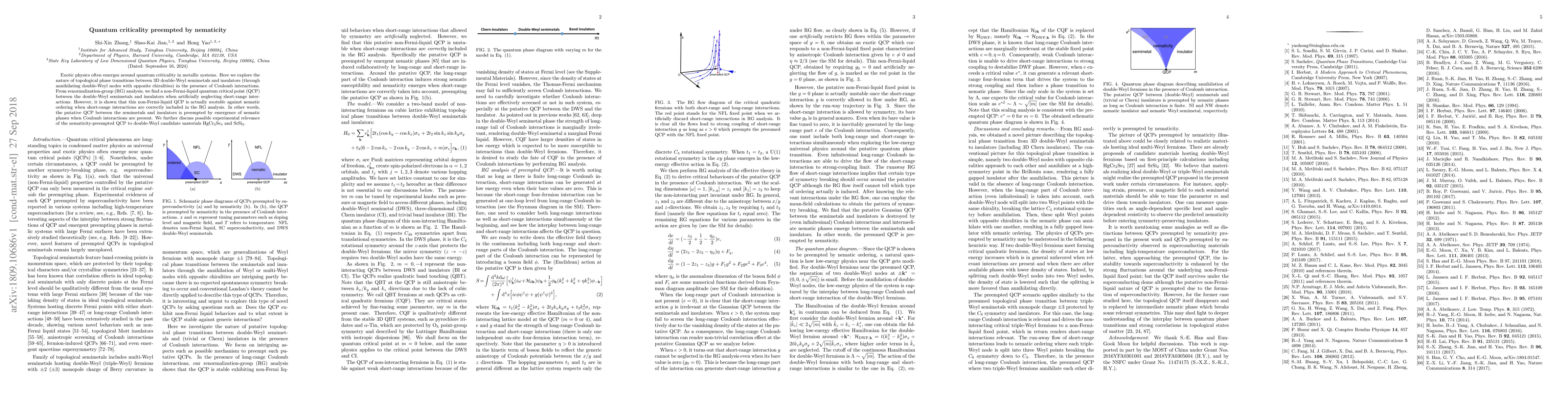Exotic physics often emerges around quantum criticality in metallic systems. Here we explore the nature of topological phase transitions between 3D double-Weyl semimetals and insulators (through annihilating double-Weyl nodes with opposite chiralities) in the presence of Coulomb interactions. From renormalization-group (RG) analysis, we find a non-Fermi-liquid quantum critical point (QCP) between the double-Weyl semimetals and insulators when artificially neglecting short-range interactions. However, it is shown that this non-Fermi-liquid QCP is actually unstable against nematic ordering when short-range interactions are correctly included in the RG analysis. In other words, the putative QCP between the semimetals and insulators is preempted by emergence of nematic phases when Coulomb interactions are present. We further discuss possible experimental relevance of the nematicity-preempted QCP to double-Weyl candidate materials HgCr2Se4 and SrSi2.