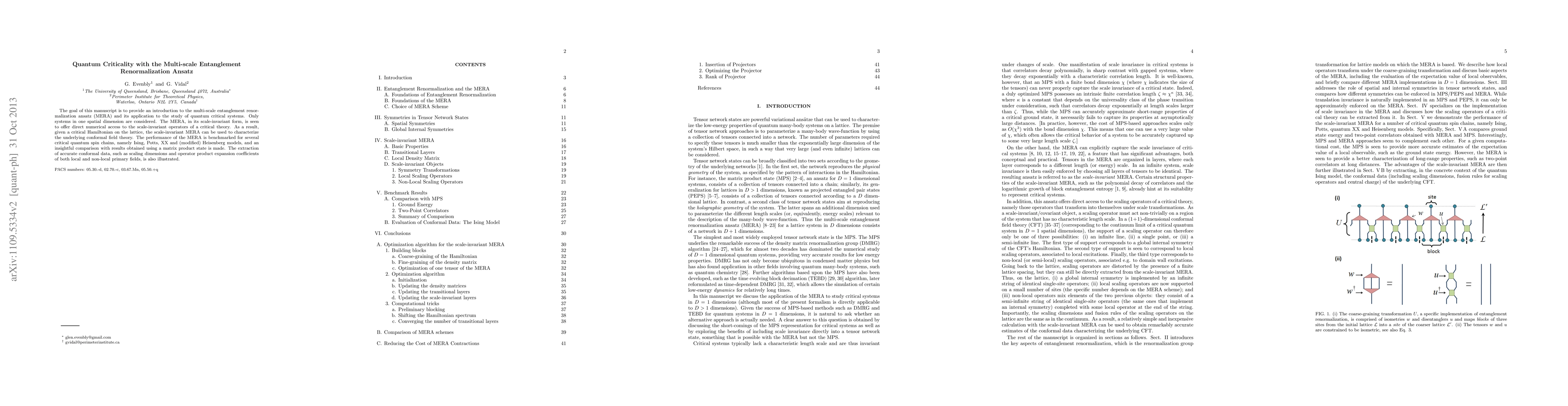 This paper introduces the multi-scale entanglement renormalization ansatz (MERA) and its application to quantum critical systems in one dimension, demonstrating its ability to characterize underlying conformal field theories. It benchmarks MERA against matrix product states for critical quantum spin chains, extracting accurate conformal data.