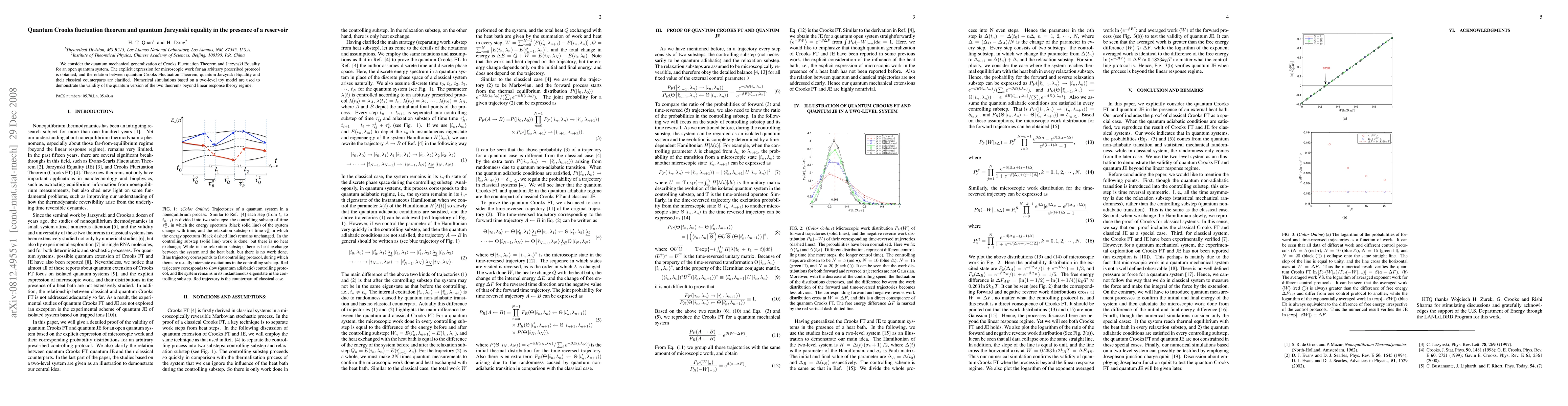 This paper generalizes the quantum Crooks Fluctuation Theorem and the quantum Jarzynski Equality for open quantum systems, providing an explicit expression for microscopic work and demonstrating their validity through numerical simulations of a two-level model. The study clarifies the relationship between these quantum theorems and their classical counterparts.
