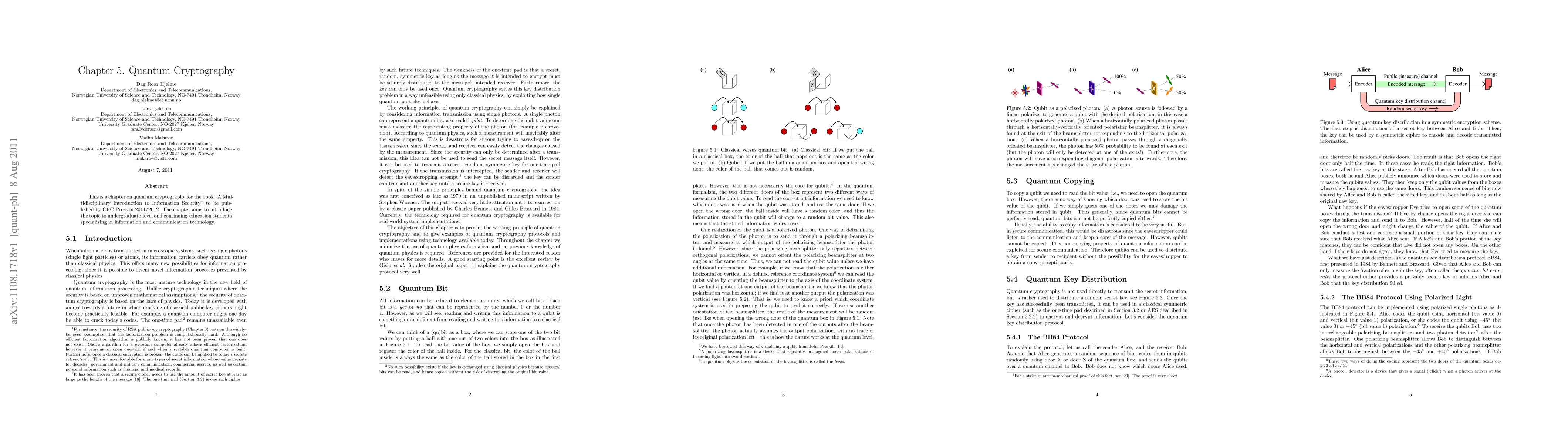 This chapter introduces quantum cryptography as a secure method for encrypting data, exploring its key principles and applications in information technology. It aims to provide an accessible overview of this complex topic for undergraduate-level students and professionals in the field.