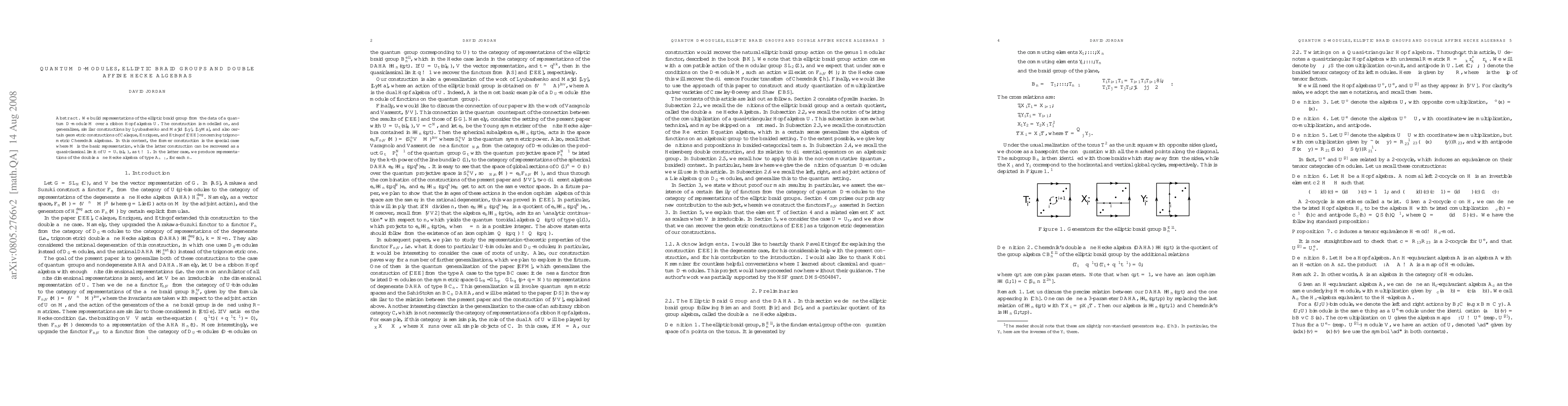 We build representations of the elliptic braid group from the data of a quantum D-module M over a ribbon Hopf algebra U. The construction is modelled on, and generalizes, similar constructions by Lyubashenko and Majid, and also certain geometric constructions of Calaque, Enriquez, and Etingof concerning trigonometric Cherednik algebras. In this context, the former construction is the special case where M is the basic representation, while the latter construction can be recovered as a quasi-classical limit of U=U_t(sl_N), as t limits 1. In the latter case, we produce representations of the double affine Hecke algebra of type A_{n-1}, for each n.