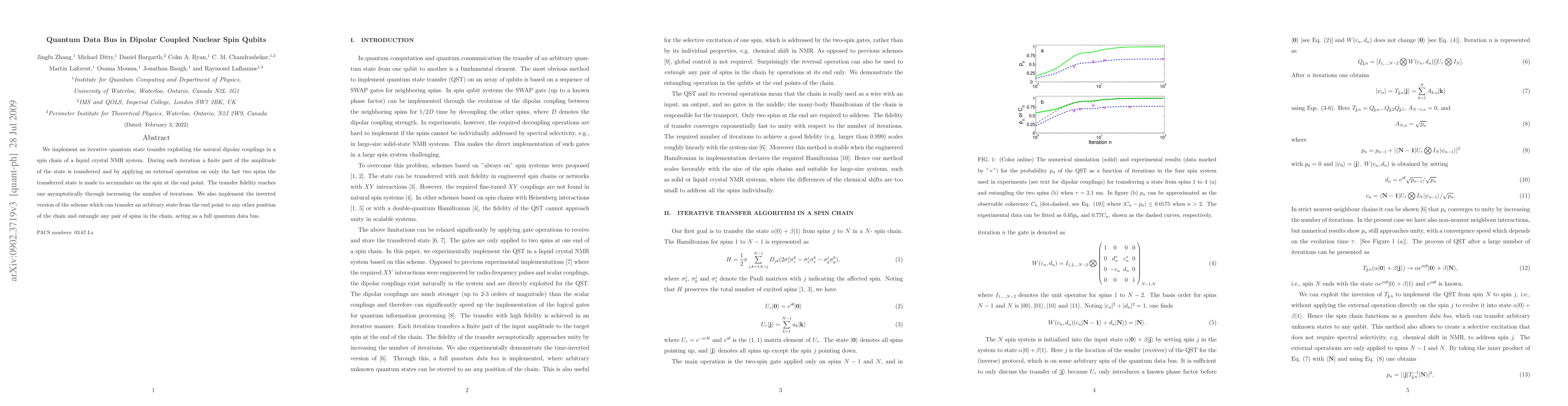 Researchers developed a quantum data bus in spin chains using natural dipolar couplings, enabling state transfer between spins and creating a full quantum information network. The system can also entangle any pair of spins and transfer an arbitrary state from one spin to another.