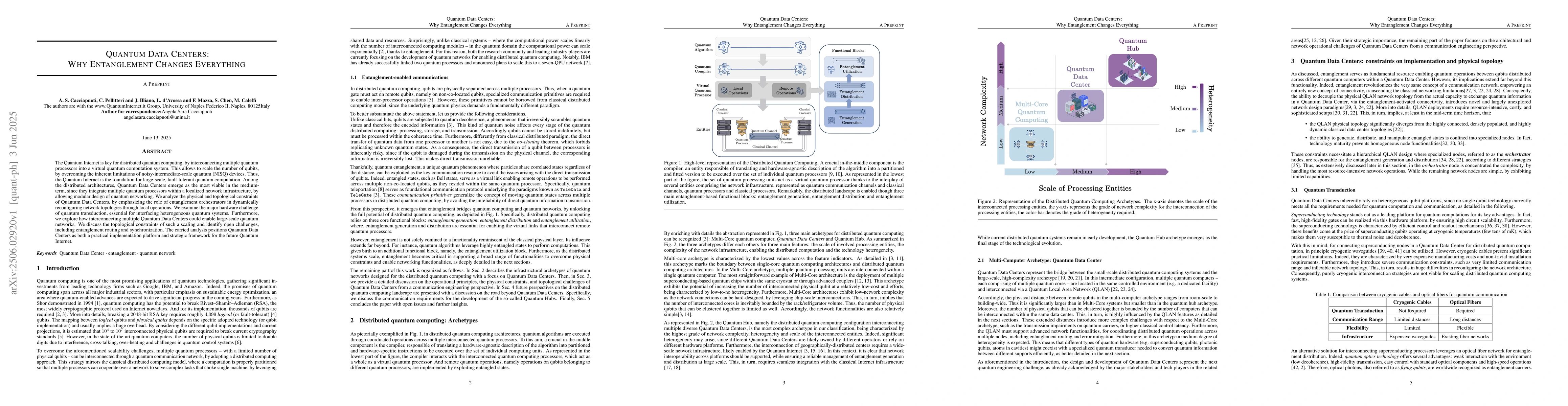 Quantum Data Centers have emerged as a promising approach to enable large-scale quantum computing by integrating multiple quantum processors within a localized network infrastructure. Their practical implementation could form the foundation for the Quantum Internet.