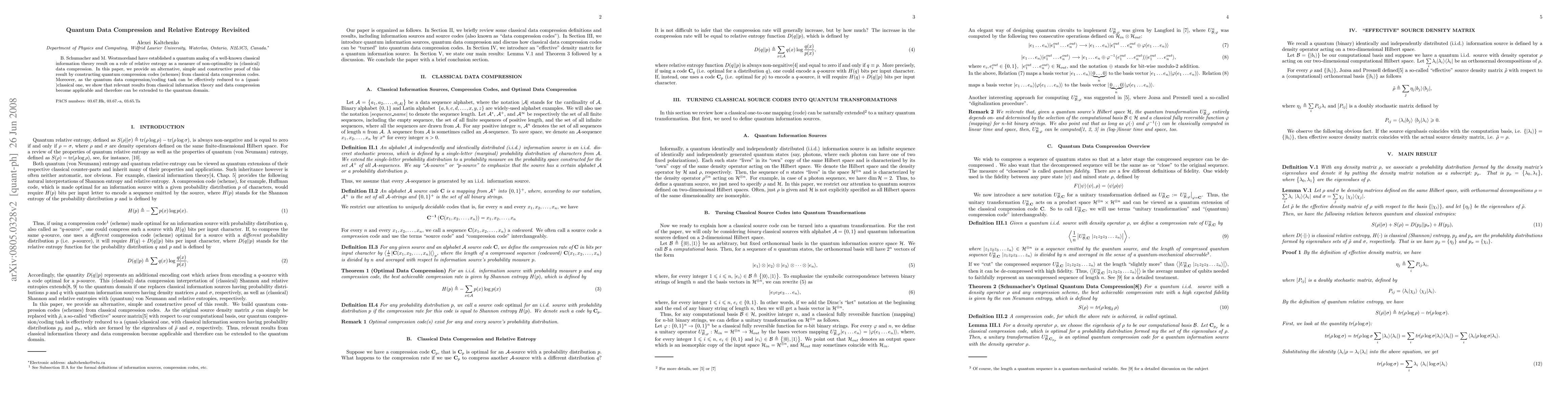 This paper offers a new proof for the quantum analog of classical data compression using relative entropy, constructing quantum compression codes from classical ones. It demonstrates that quantum data compression can be reduced to a quasi-classical problem, allowing classical information theory results to be extended to the quantum domain.