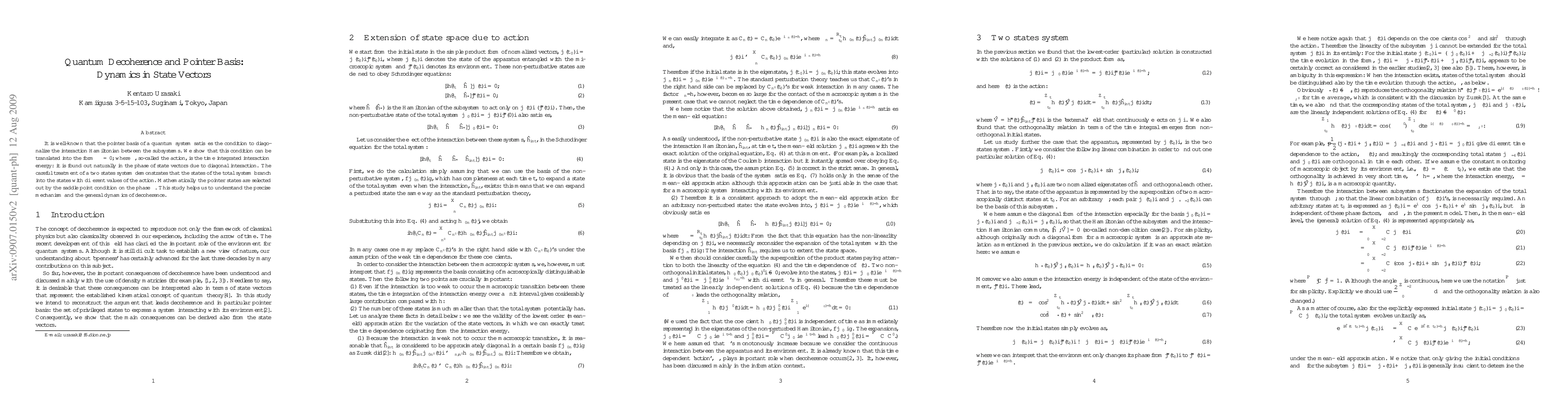 This paper explores the quantum decoherence mechanism through the pointer basis, revealing that the interaction Hamiltonian's diagonalization leads to the condition $\delta\Lambda=0$ for the action $\Lambda$. The study demonstrates that quantum states split into distinct action values, with pointer states emerging via the saddle point condition on $\Lambda$, providing insight into the dynamics of decoherence.