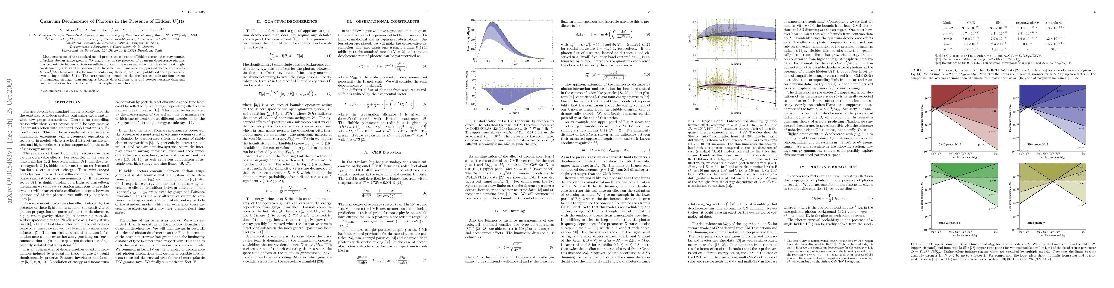 Many extensions of the standard model predict the existence of hidden sectors that may contain unbroken abelian gauge groups. We argue that in the presence of quantum decoherence photons may convert into hidden photons on sufficiently long time scales and show that this effect is strongly constrained by CMB and supernova data. In particular, Planck-scale suppressed decoherence scales D ~ E^2/M_Pl (characteristic for non-critical string theories) are incompatible with the presence of even a single hidden U(1). The corresponding bounds on the decoherence scale are four orders of magnitude stronger than analogous bounds derived from solar and reactor neutrino data and complement other bounds derived from atmospheric neutrino data.