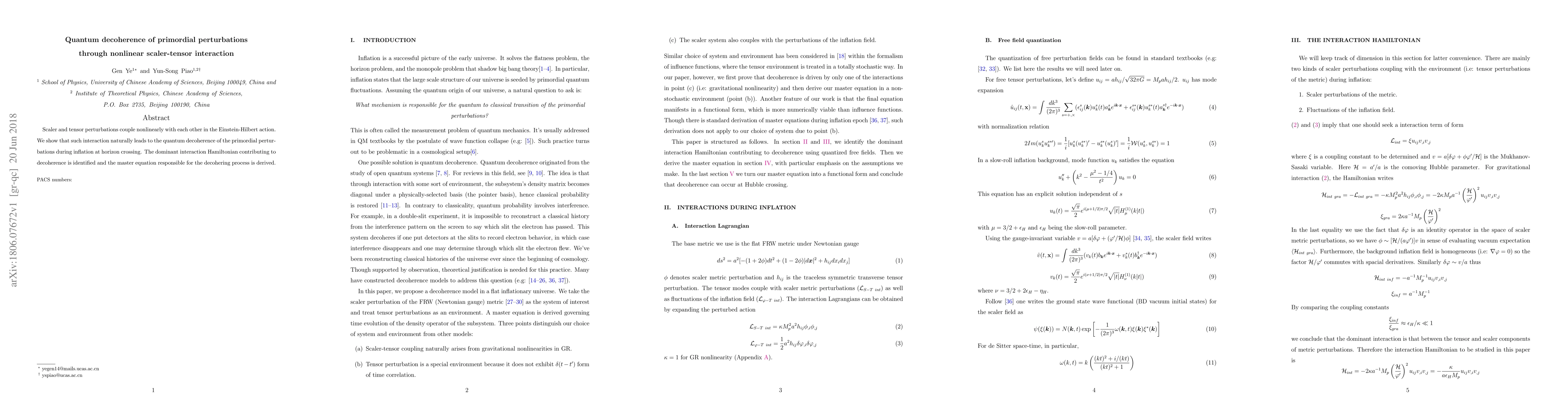Researchers show that nonlinear interactions between scalar and tensor perturbations during inflation cause quantum decoherence of primordial perturbations at horizon crossing, leading to a loss of coherence in the early universe.