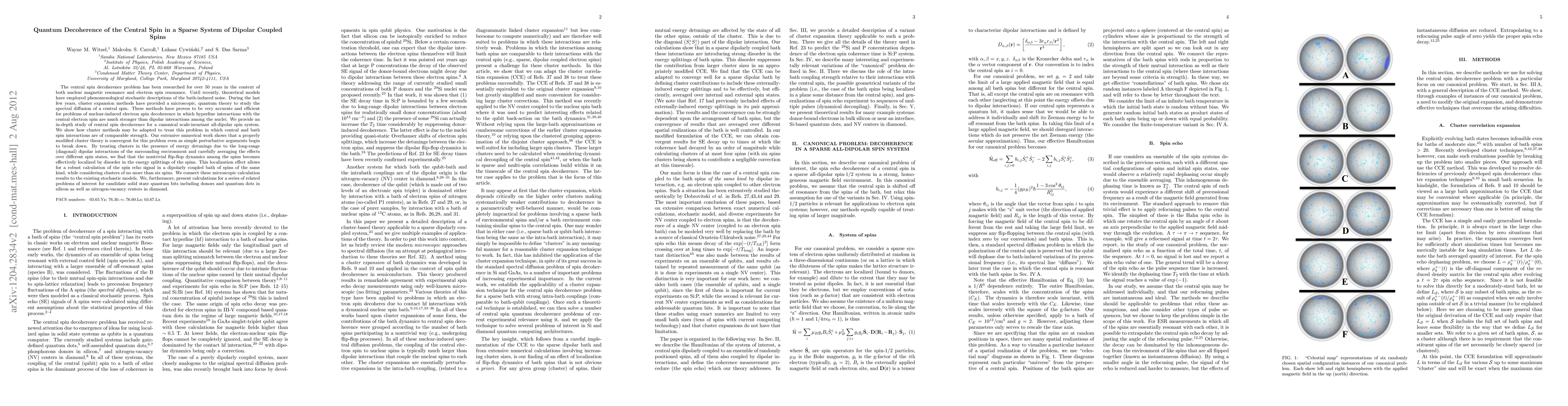 The central spin decoherence problem has been researched for over 50 years in the context of both nuclear magnetic resonance and electron spin resonance. Until recently, theoretical models have employed phenomenological stochastic descriptions of the bath-induced noise. During the last few years, cluster expansion methods have provided a microscopic, quantum theory to study the spectral diffusion of a central spin. These methods have proven to be very accurate and efficient for problems of nuclear-induced electron spin decoherence in which hyperfine interactions with the central electron spin are much stronger than dipolar interactions among the nuclei. We provide an in-depth study of central spin decoherence for a canonical scale-invariant all-dipolar spin system. We show how cluster methods may be adapted to treat this problem in which central and bath spin interactions are of comparable strength. Our extensive numerical work shows that a properly modified cluster theory is convergent for this problem even as simple perturbative arguments begin to break down. By treating clusters in the presence of energy detunings due to the long-range (diagonal) dipolar interactions of the surrounding environment and carefully averaging the effects over different spin states, we find that the nontrivial flip-flop dynamics among the spins becomes effectively localized by disorder in the energy splittings of the spins. This localization effect allows for a robust calculation of the spin echo signal in a dipolarly coupled bath of spins of the same kind, while considering clusters of no more than 6 spins. We connect these microscopic calculation results to the existing stochastic models. We, furthermore, present calculations for a series of related problems of interest for candidate solid state quantum bits including donors and quantum dots in silicon as well as nitrogen-vacancy centers in diamond.