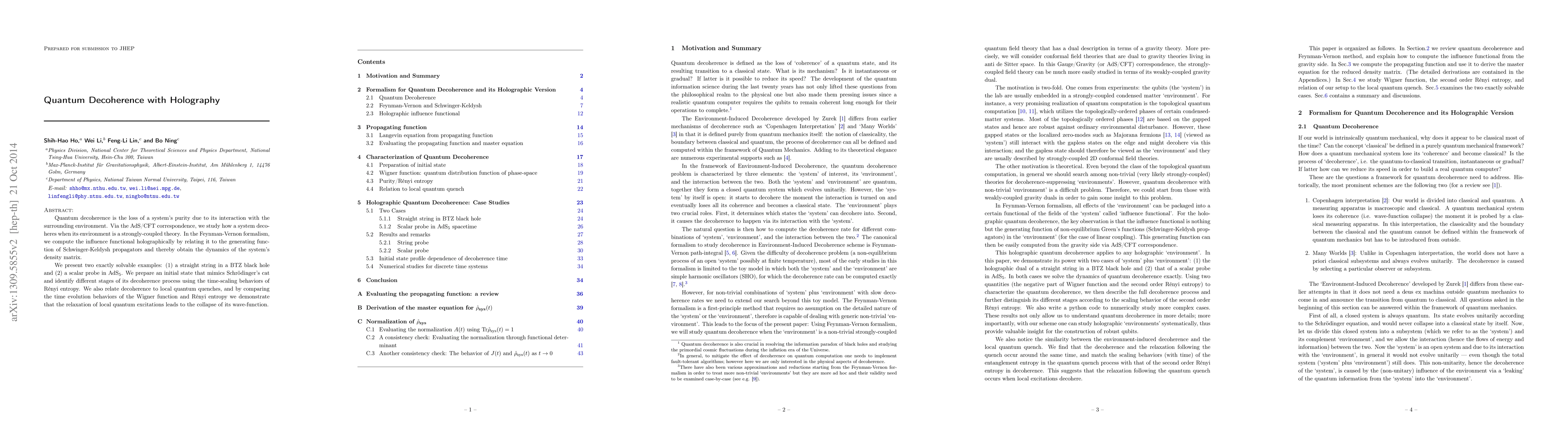 Quantum decoherence is the loss of a system's purity due to its interaction with the surrounding environment. Via the AdS/CFT correspondence, we study how a system decoheres when its environment is a strongly-coupled theory. In the Feynman-Vernon formalism, we compute the influence functional holographically by relating it to the generating function of Schwinger-Keldysh propagators and thereby obtain the dynamics of the system's density matrix. We present two exactly solvable examples: (1) a straight string in a BTZ black hole and (2) a scalar probe in AdS$_5$. We prepare an initial state that mimics Schr\"odinger's cat and identify different stages of its decoherence process using the time-scaling behaviors of R\'enyi entropy. We also relate decoherence to local quantum quenches, and by comparing the time evolution behaviors of the Wigner function and R\'enyi entropy we demonstrate that the relaxation of local quantum excitations leads to the collapse of its wave-function.