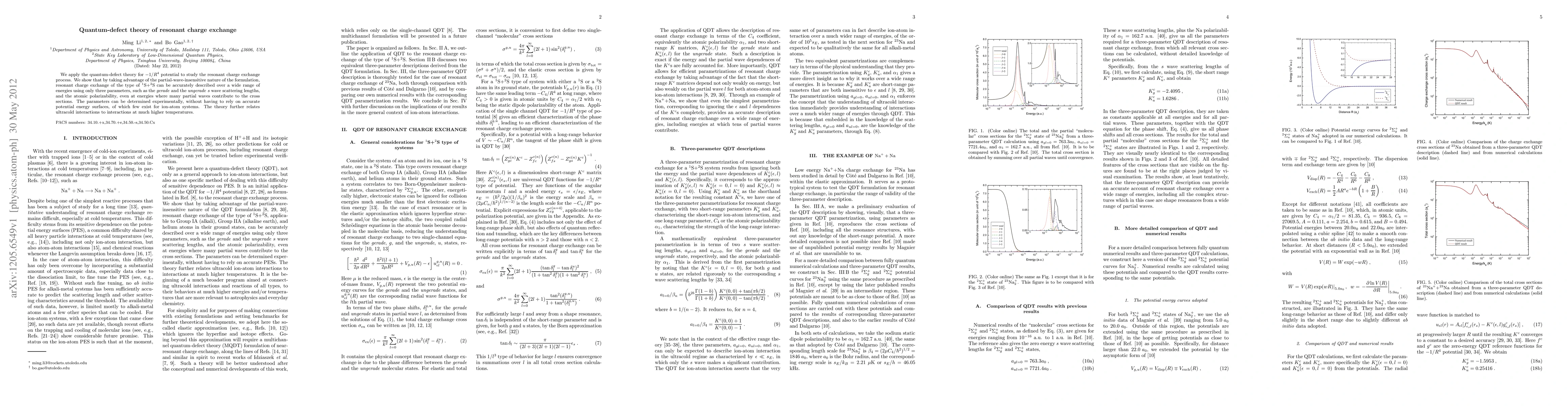 This paper applies quantum-defect theory to describe resonant charge exchange in $-1/R^4$ potentials, demonstrating that only three parameters are needed for accurate predictions across a broad energy range. The parameters are experimentally accessible, simplifying the study of ion-atom interactions.