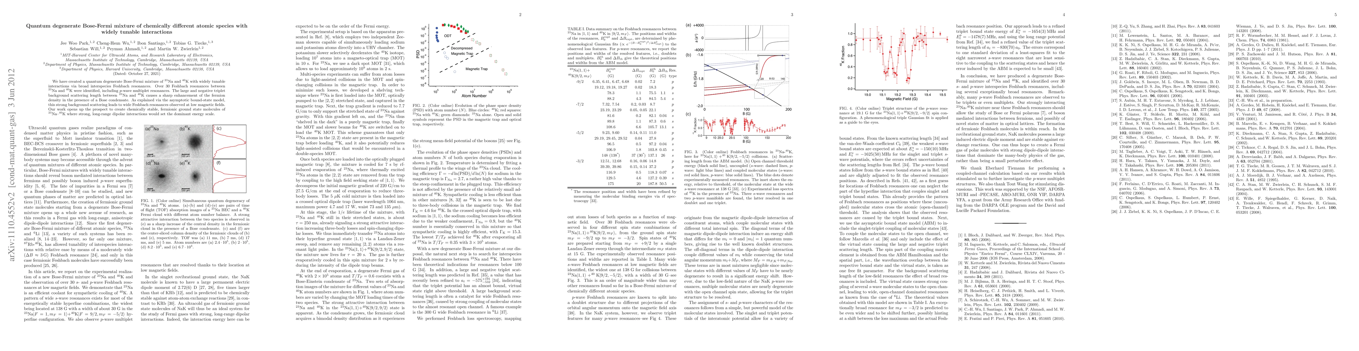 This paper reports the creation of a quantum degenerate Bose-Fermi mixture of 23Na and 40K with tunable interactions through broad interspecies Feshbach resonances. The study identifies twenty Feshbach resonances and highlights the strong negative triplet background scattering, leading to significant fermion density enhancement in the presence of a Bose condensate.