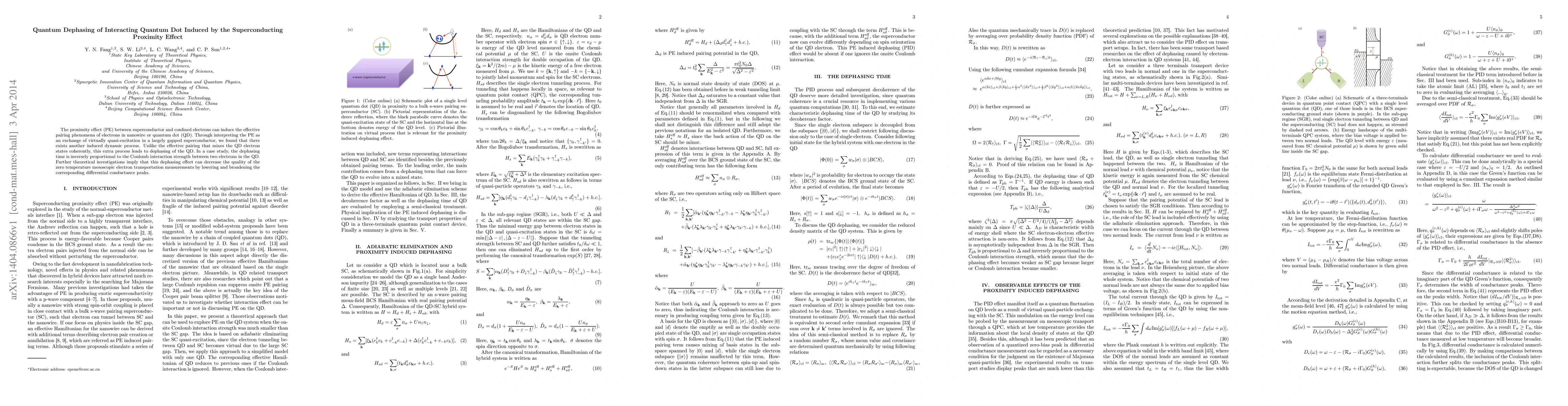 The proximity effect (PE) between superconductor and confined electrons can induce the effective pairing phenomena of electrons in nanowire or quantum dot (QD). Through interpreting the PE as an exchange of virtually quasi-excitation in a largely gapped superconductor, we found that there exists another induced dynamic process. Unlike the effective pairing that mixes the QD electron states coherently, this extra process leads to dephasing of the QD. In a case study, the dephasing time is inversely proportional to the Coulomb interaction strength between two electrons in the QD. Further theoretical investigations imply that this dephasing effect can decrease the quality of the zero temperature mesoscopic electron transportation measurements by lowering and broadening the corresponding differential conductance peaks.