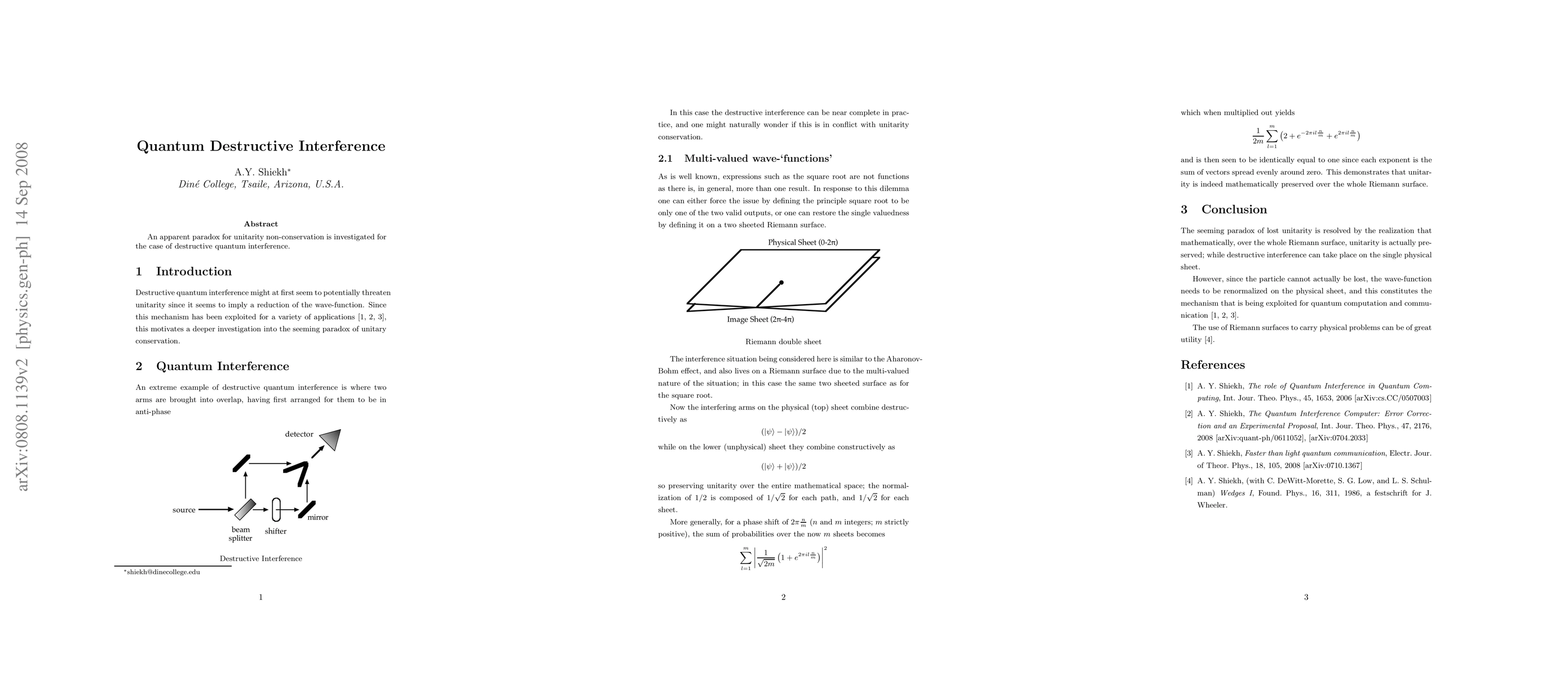 Summary: This paper explores the paradox of apparent unitarity non-conservation in quantum destructive interference, aiming to clarify the underlying principles governing this phenomenon.