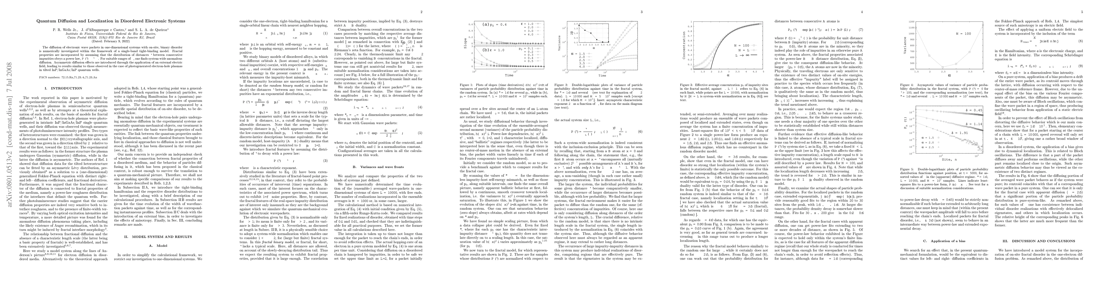 Researchers found anomalous diffusion in one-dimensional electronic systems with binary disorder, which behaves similarly to photogenerated electron-hole plasmas under an external electric field.