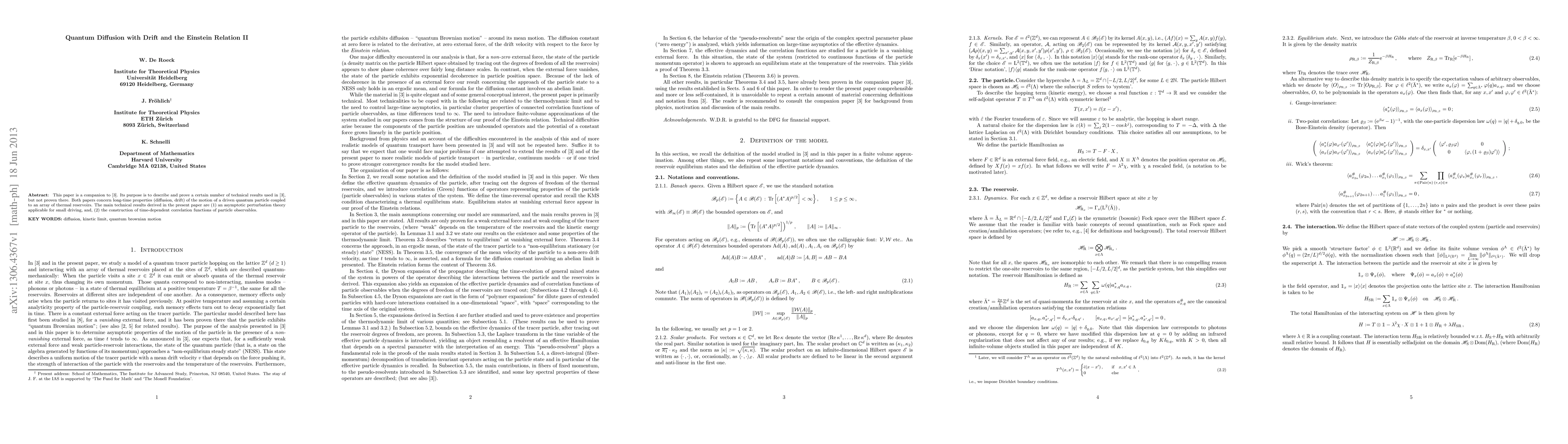 This paper is a companion to 'Quantum Diffusion with Drift and the Einstein Relation I' (jointly submitted to arXiv). Its purpose is to describe and prove a certain number of technical results used in 'Quantum Diffusion with Drift and the Einstein Relation I', but not proven there. Both papers concern long-time properties (diffusion, drift) of the motion of a driven quantum particle coupled to an array of thermal reservoirs. The main technical results derived in the present paper are $(1)$ an asymptotic perturbation theory applicable for small driving, and, $(2)$ the construction of time-dependent correlation functions of particle observables.