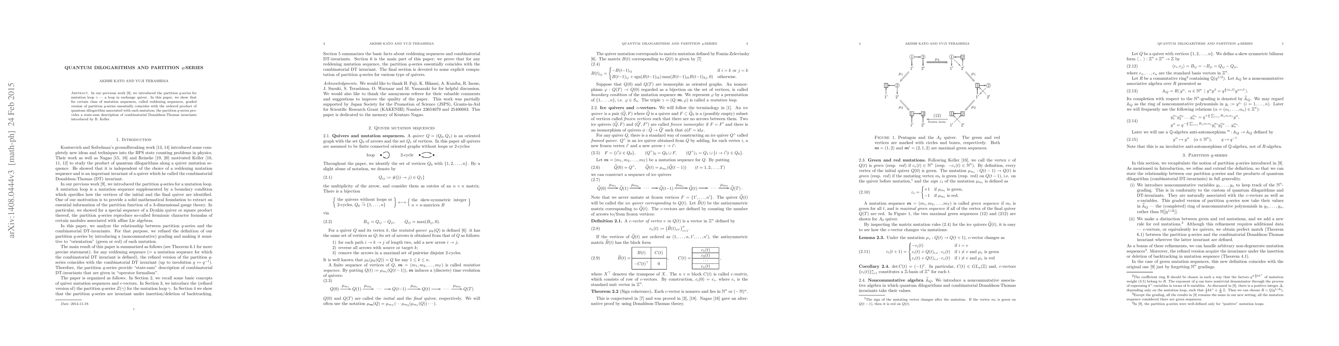 This paper demonstrates that for reverse-ending mutation loops, a graded partition q-series aligns with the ordered product of quantum dilogarithms, offering a state-sum description for combinatorial Donaldson-Thomas invariants.