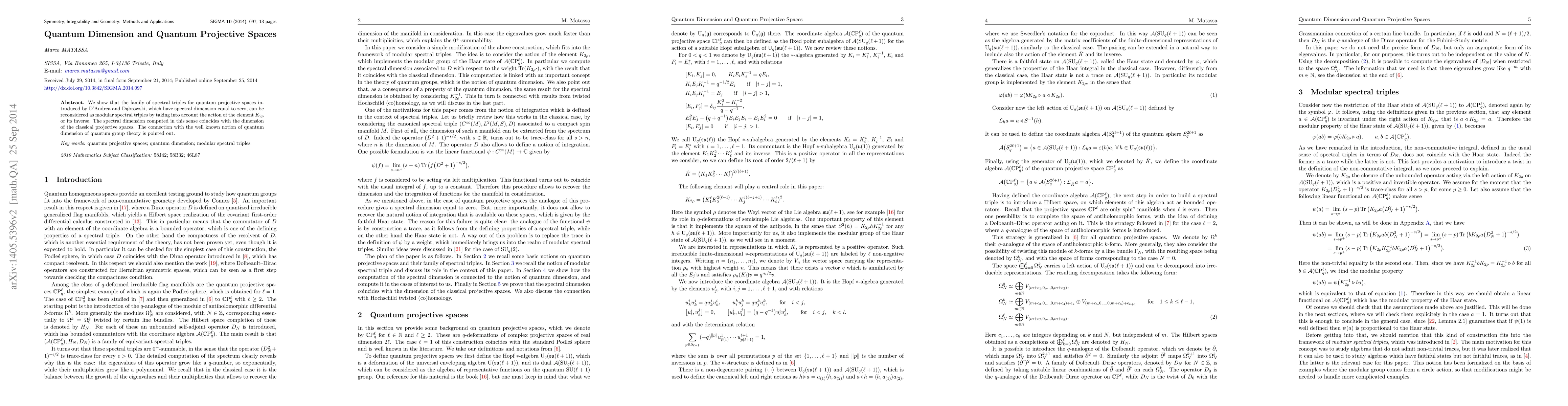 This paper reinterprets D'Andrea and Dabrowski's spectral triples for quantum projective spaces as modular spectral triples, aligning their spectral dimension with the classical projective space dimension and linking it to the quantum dimension concept in quantum group theory.