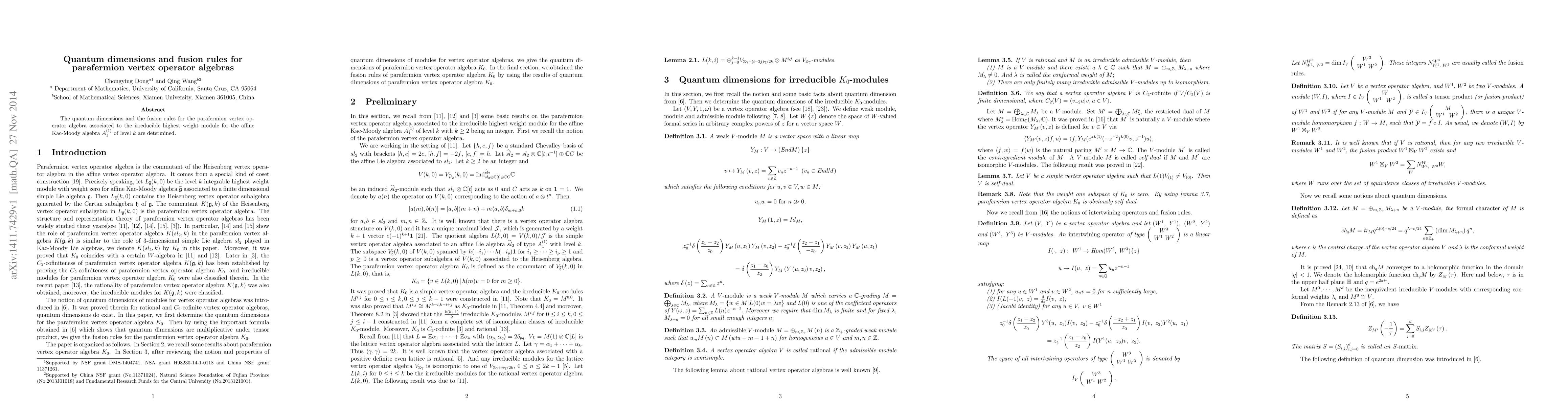 Summary: This paper determines the quantum dimensions and fusion rules for the parafermion vertex operator algebra linked to the irreducible highest weight module of the A_1^{(1)} affine Kac-Moody algebra at level k. The findings provide insights into the algebraic structure and inter-module relationships within the parafermion system.