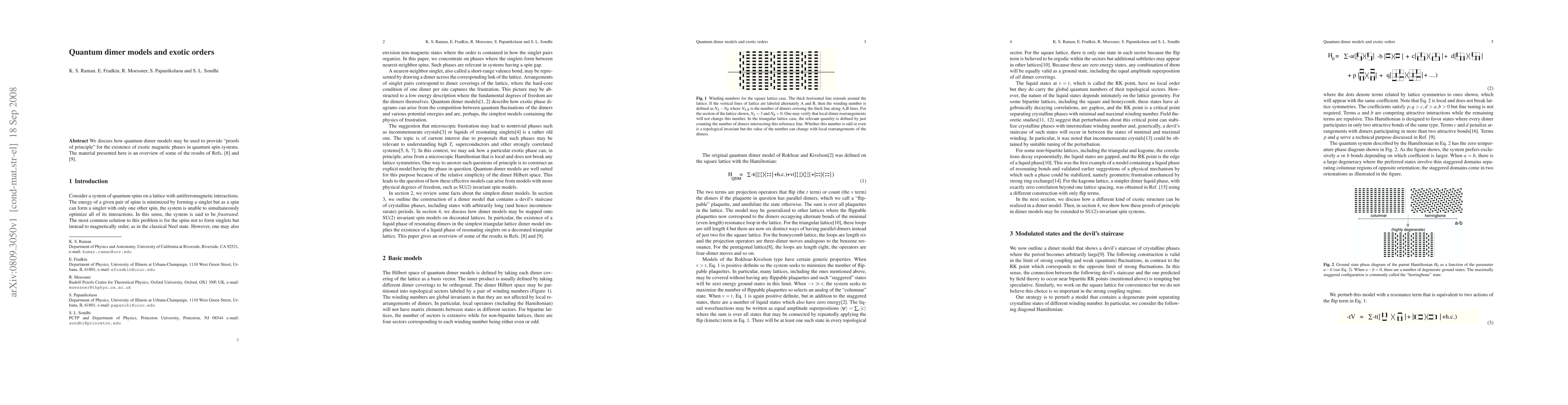 Summary: This paper explores quantum dimer models as a tool to demonstrate the potential for exotic magnetic orders in quantum spin systems, providing foundational evidence for their existence.