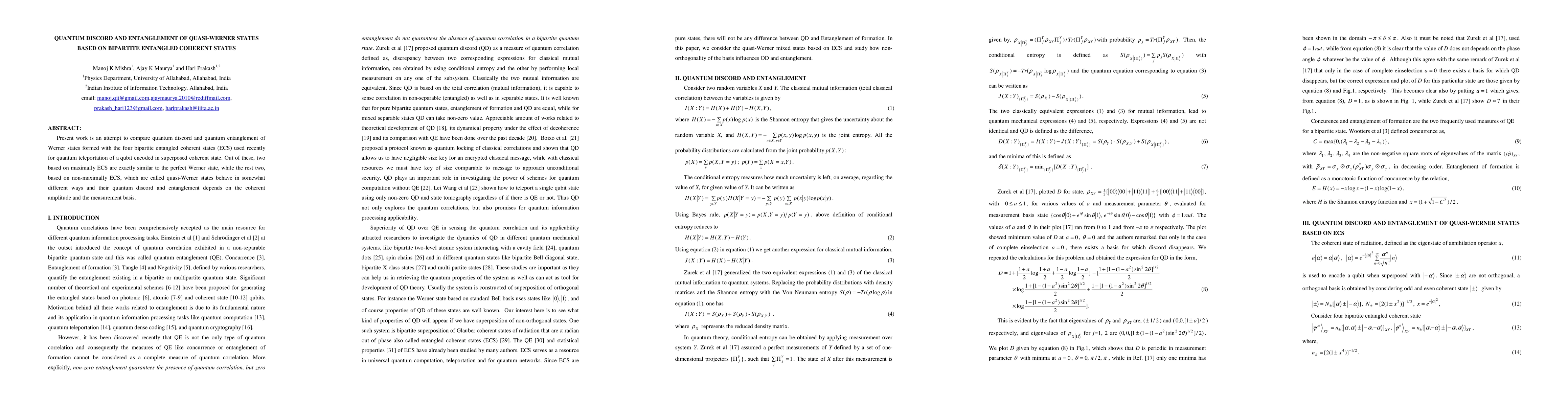 Present work is an attempt to compare quantum discord and quantum entanglement of Werner states formed with the four bipartite entangled coherent states (ECS) used recently for quantum teleportation of a qubit encoded in superposed coherent state. Out of these, two based on maximally ECS are exactly similar to the perfect Werner state, while the rest two, based on non-maximally ECS, which are called quasi-Werner states behave in somewhat different ways and their quantum discord and entanglement depends on the coherent amplitude and the measurement basis.