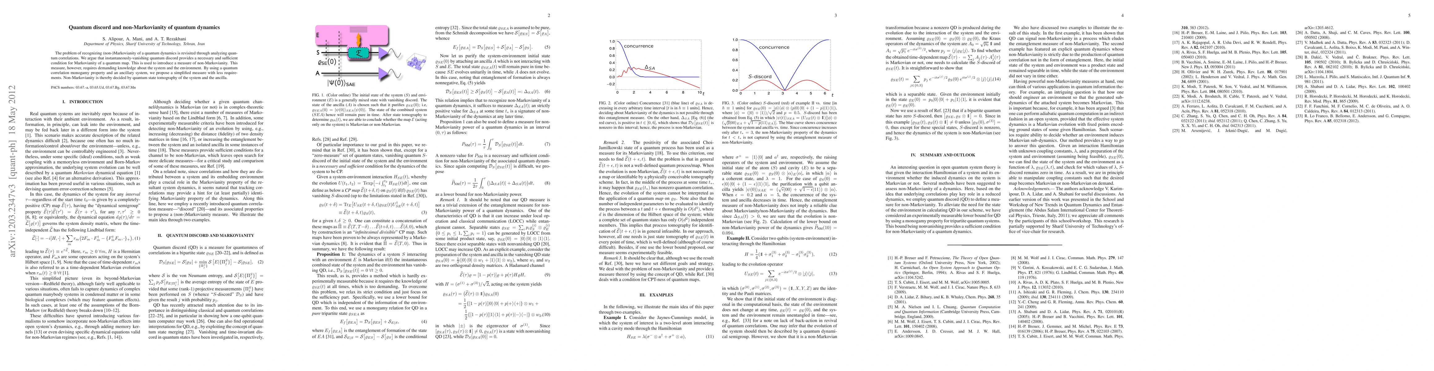 This paper explores the relationship between quantum discord and the non-Markovianity of quantum dynamics, proposing that vanishing quantum discord is a necessary and sufficient condition for Markovianity. It introduces a simplified measure of non-Markovianity using quantum correlation monogamy and an ancillary system, requiring only state tomography of the system and the ancilla.