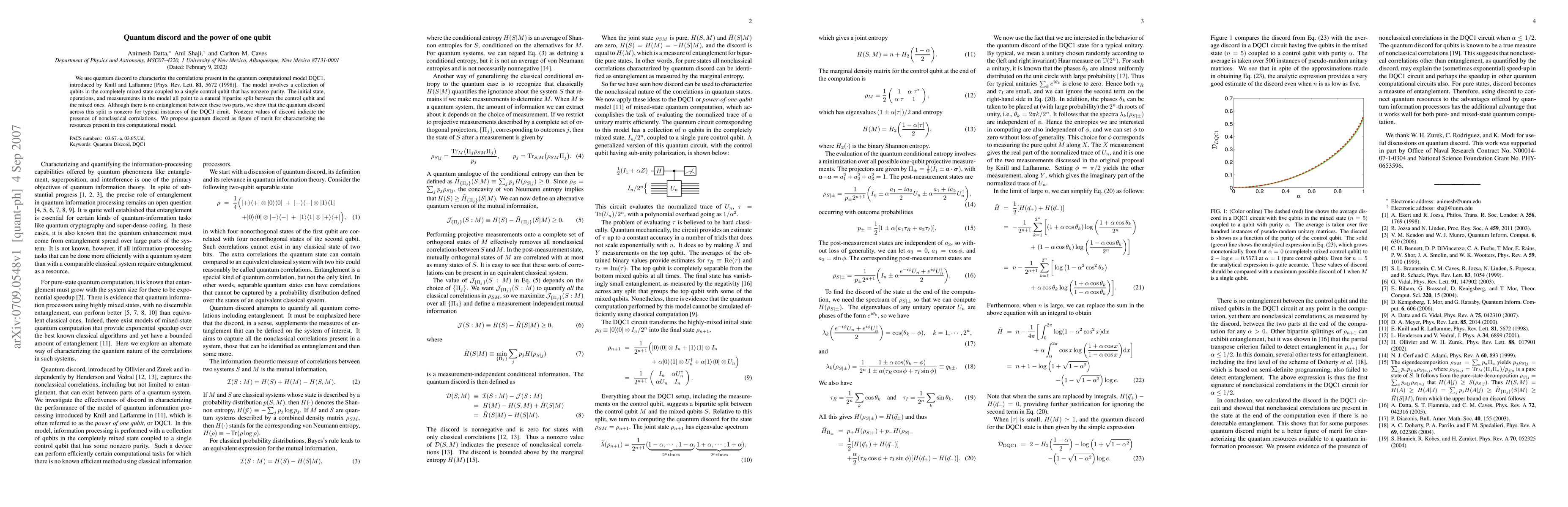 This paper investigates quantum discord in the DQC1 quantum computational model, revealing nonclassical correlations despite the absence of entanglement between qubits. Quantum discord is proposed as a measure of the model's computational resources.